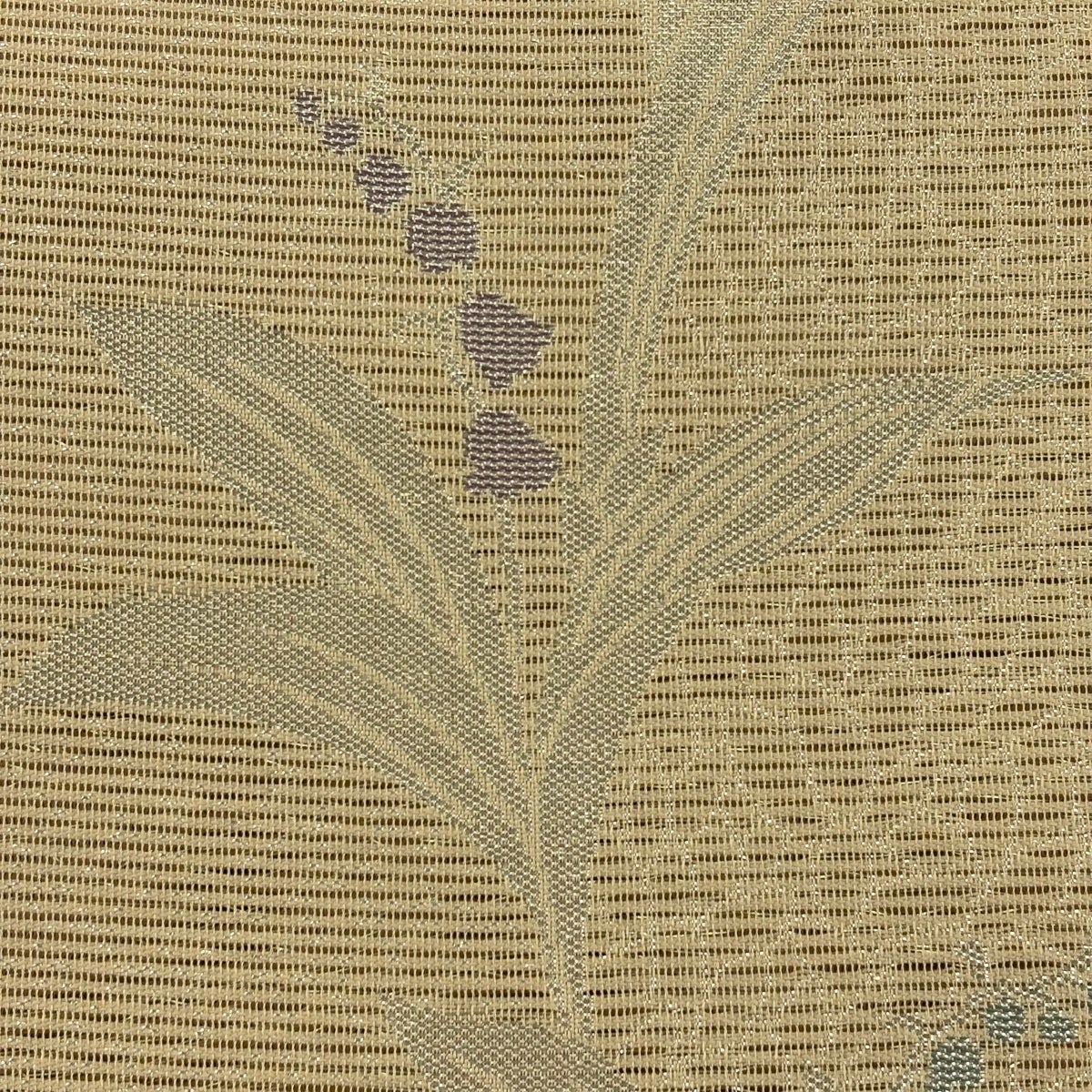 袋帯 名品 夏帯 紗 草花 銀糸 箔 ベージュ お太鼓柄 正絹