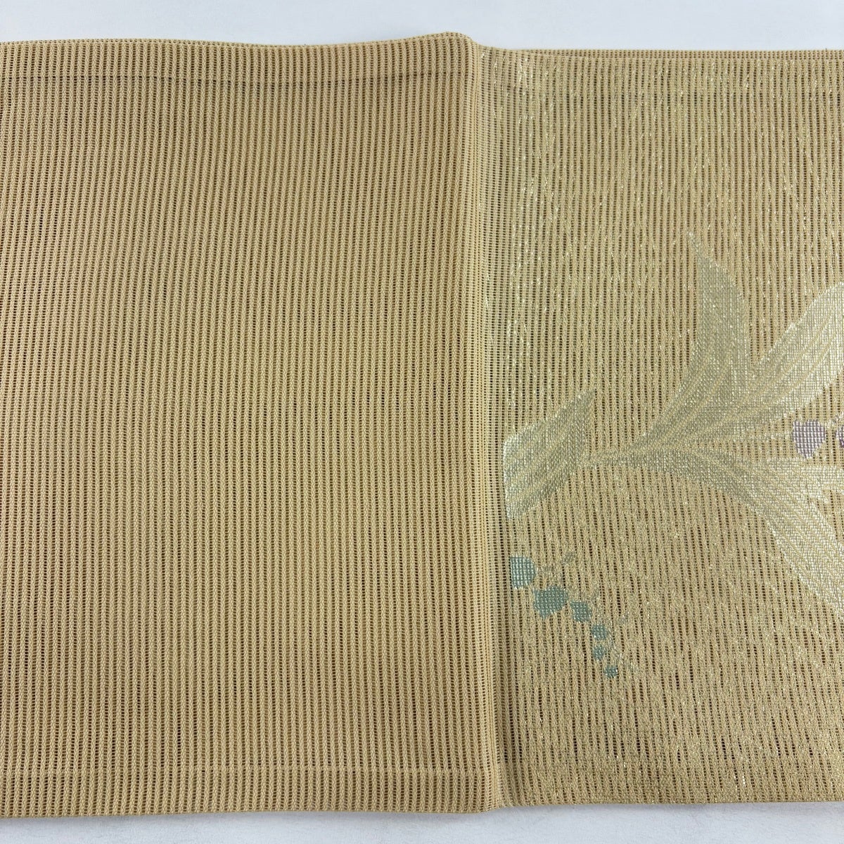 袋帯 秀品 夏帯 草花 雪輪 金銀糸 箔 ベージュ 六通 正絹