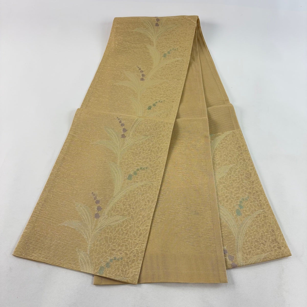 【美品】 袋名古屋帯 秀品 夏帯 絽 鈴蘭 箔 ベージュ 正絹