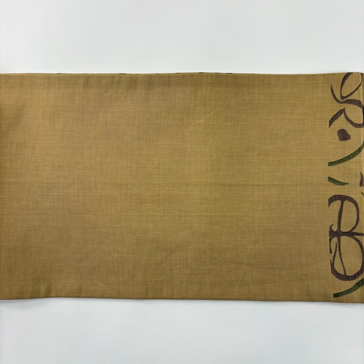 袋帯 秀品 夏帯 紗 桔梗 葉 刺繍 金糸 ベージュ 六通 正絹