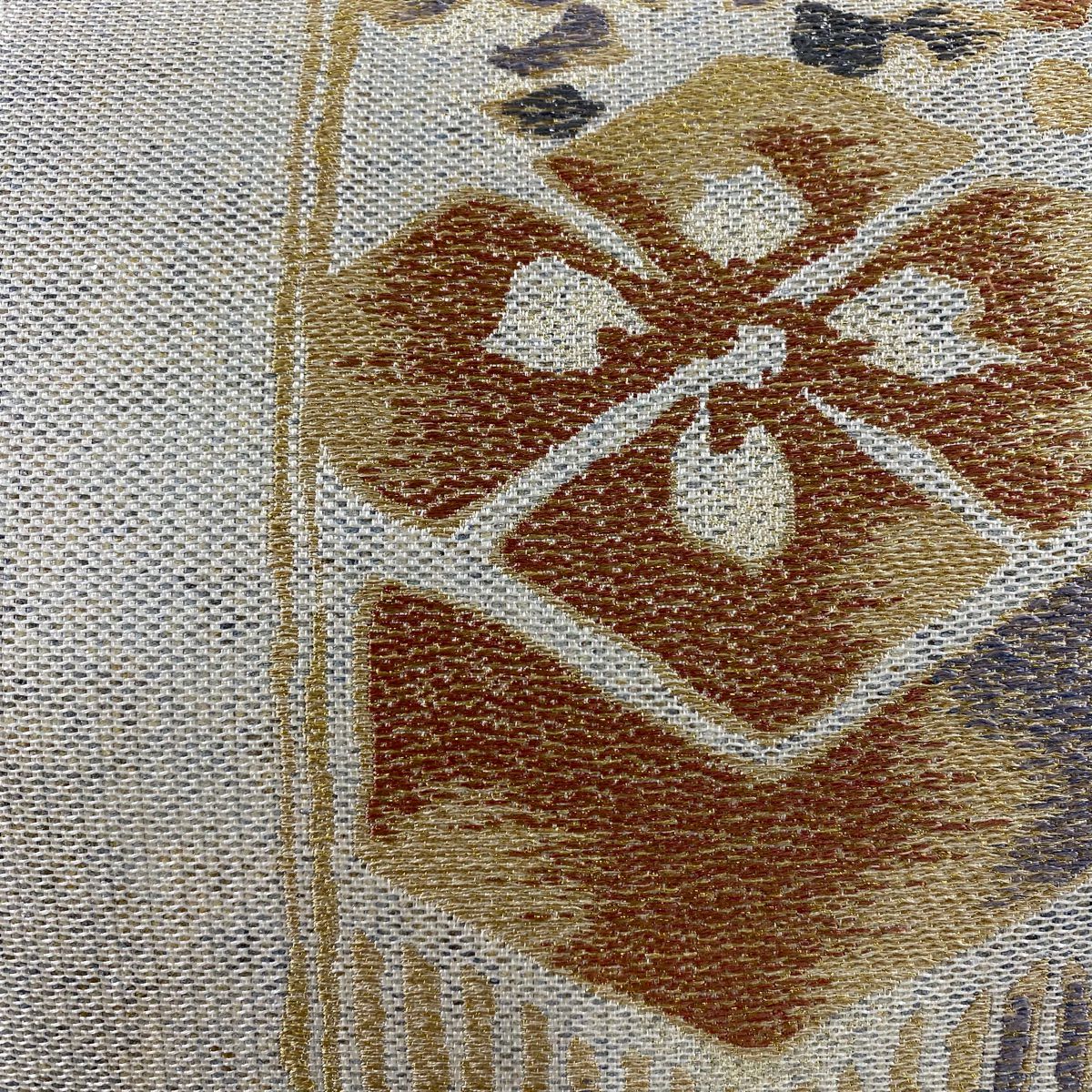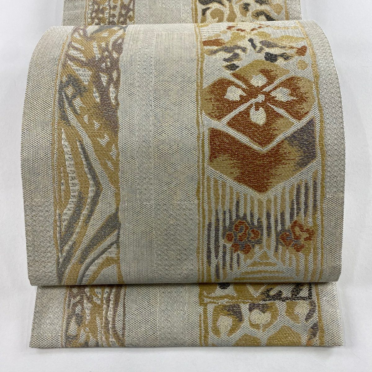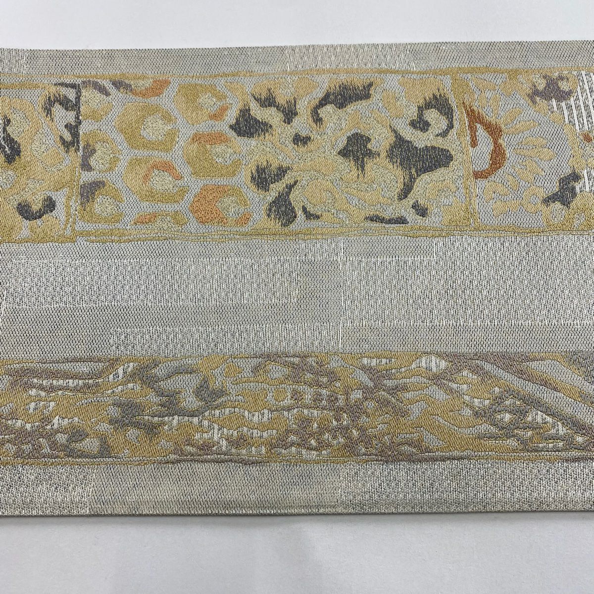 【在庫一掃】 【美品】 袋帯 秀品 幾何学 金糸 ベージュ 六通 正絹