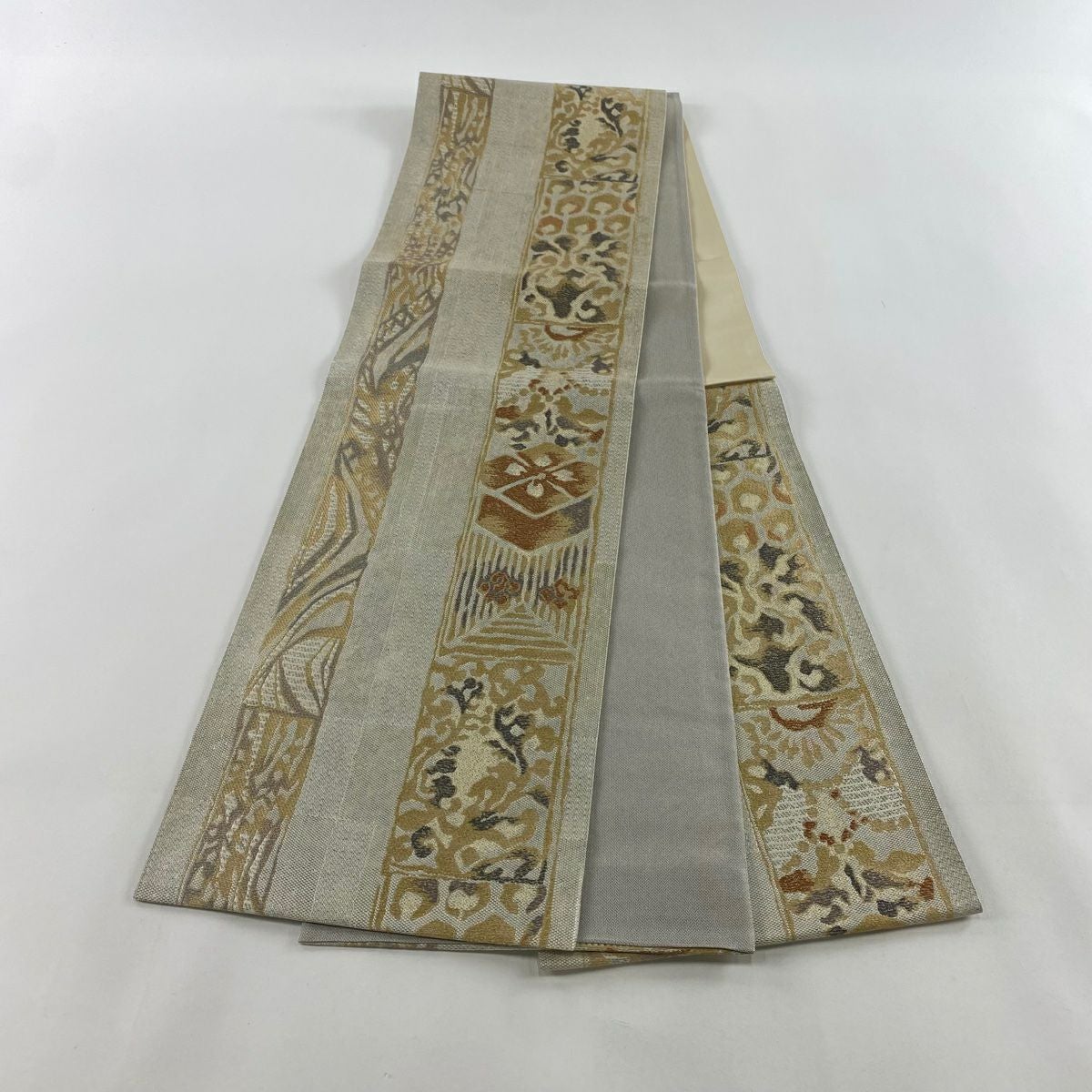 【在庫一掃】 【美品】 袋帯 名品 草花 金銀糸 ベージュ 六通 正絹