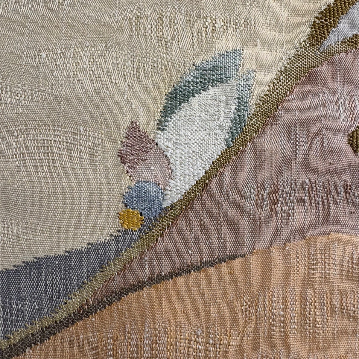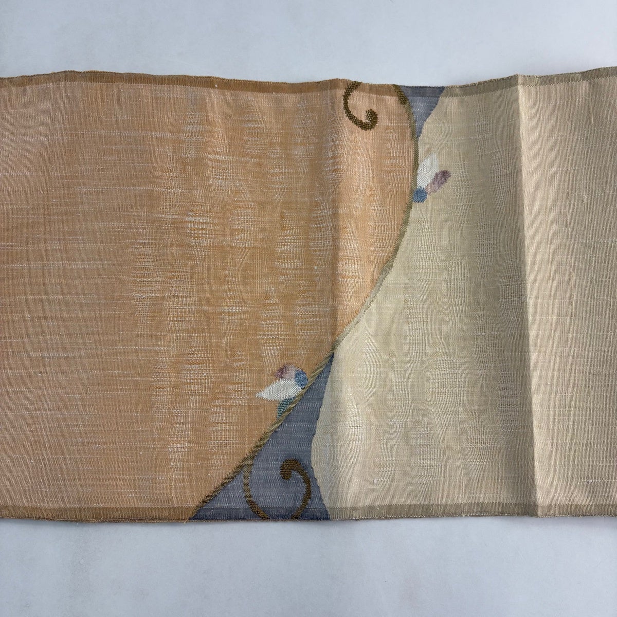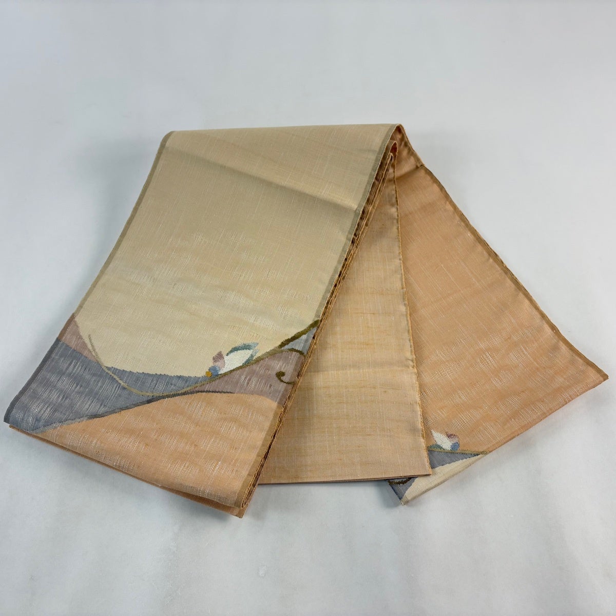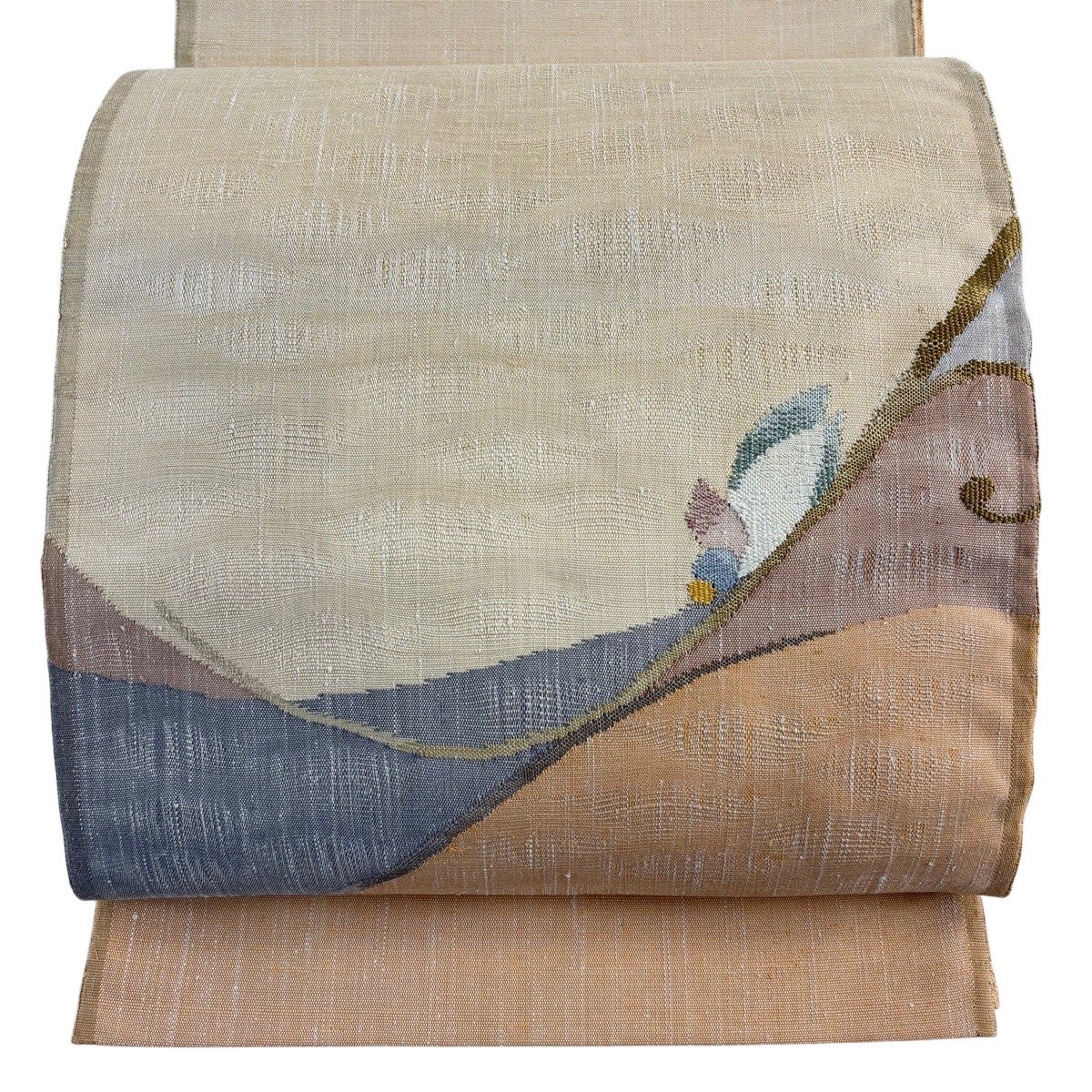【美品】 袋帯 秀品 夏帯 樹木 山並み ベージュ お太鼓柄 正絹