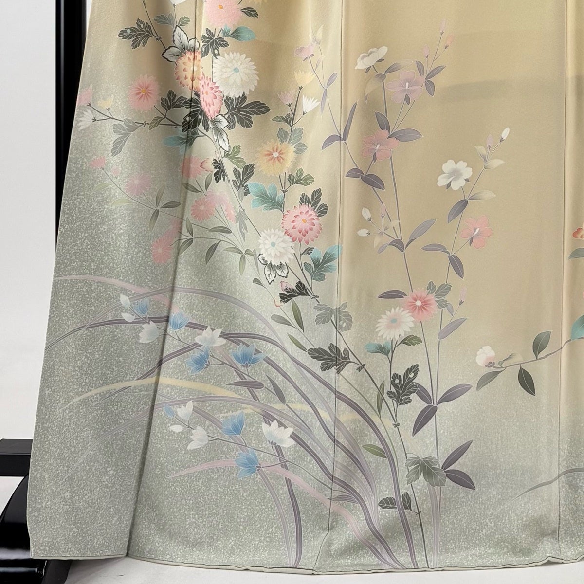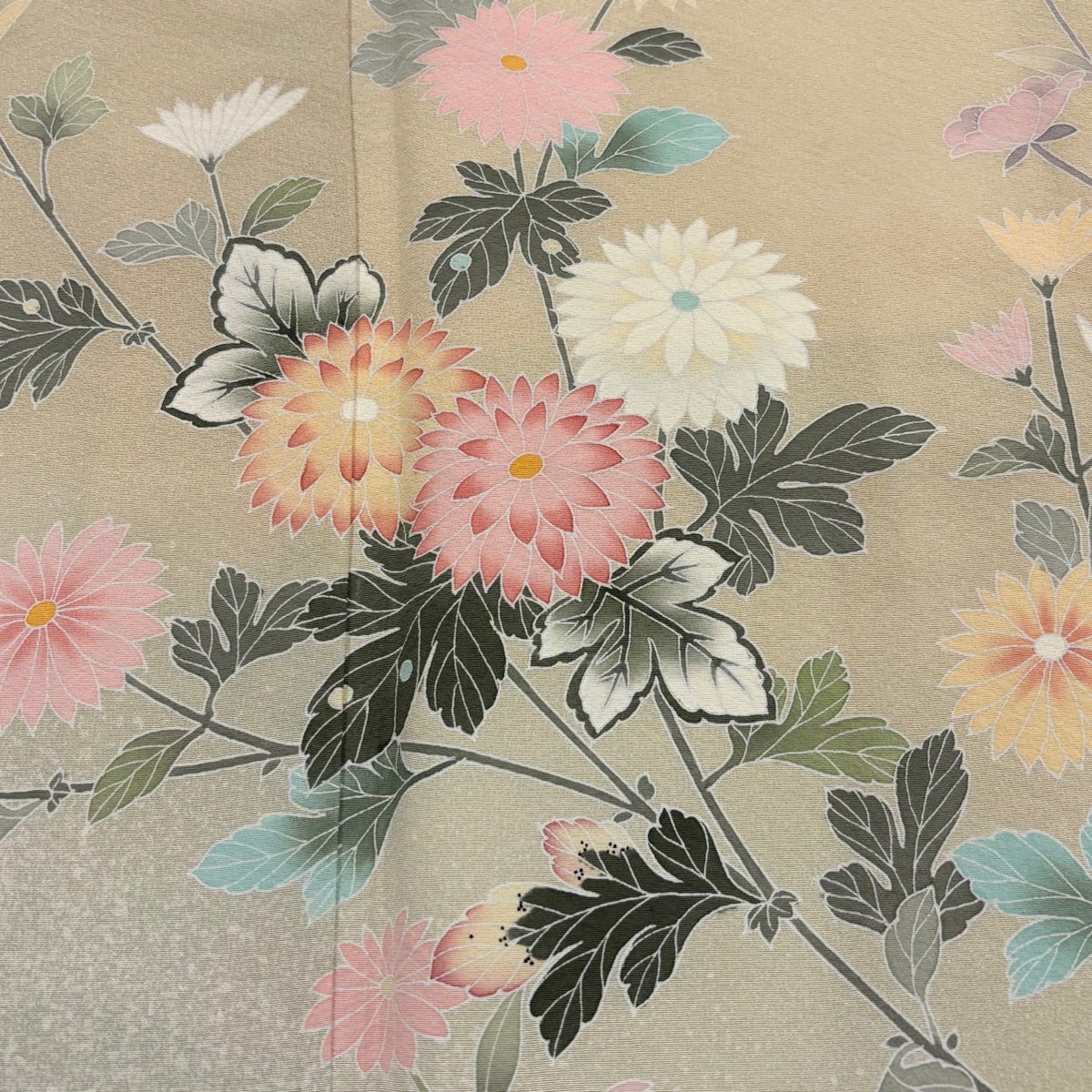 訪問着 身丈169cm 裄丈68.5cm L 袷 落款あり 菊 草花 ぼかし ベージュ 正絹 名品