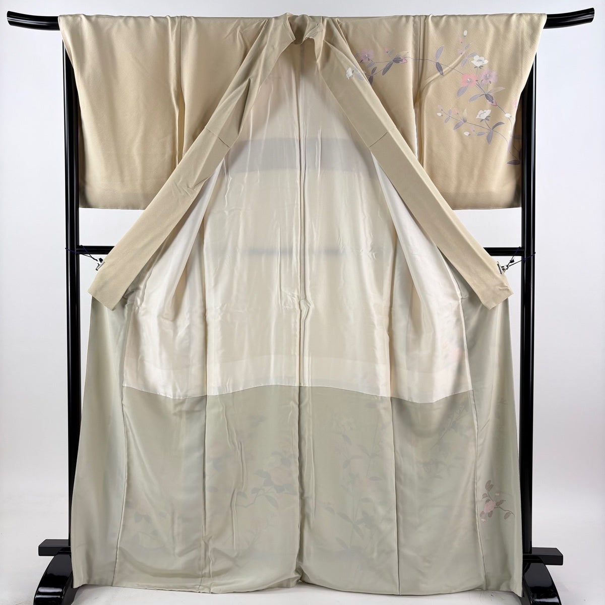 付下げ 身丈157cm 裄丈62cm S 袷 落款あり 草花 ぼかし ベージュ 正絹 優品 一つ紋