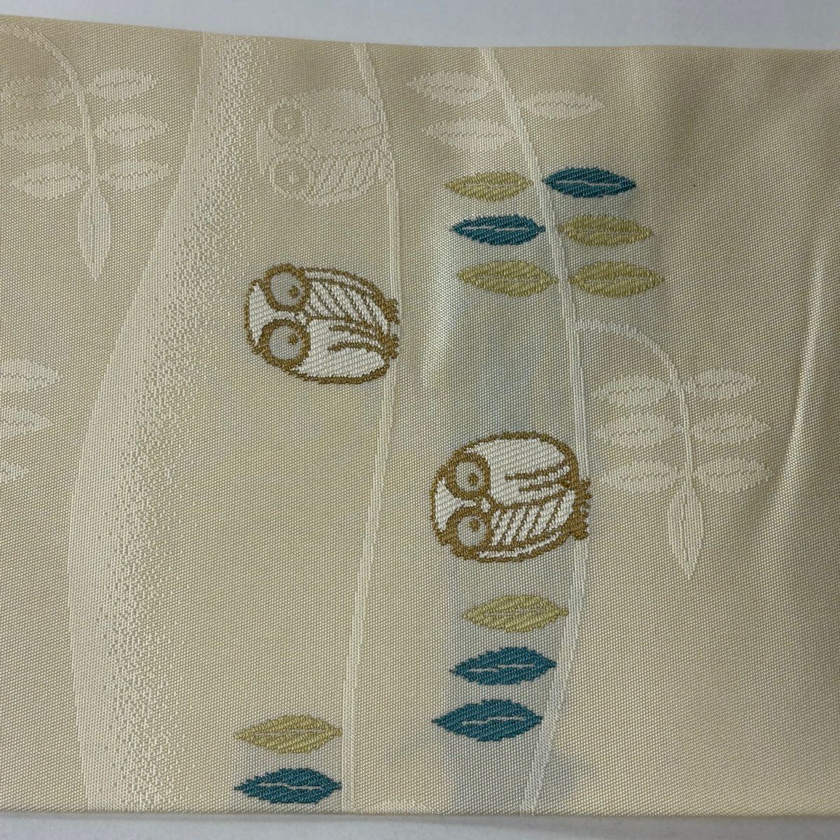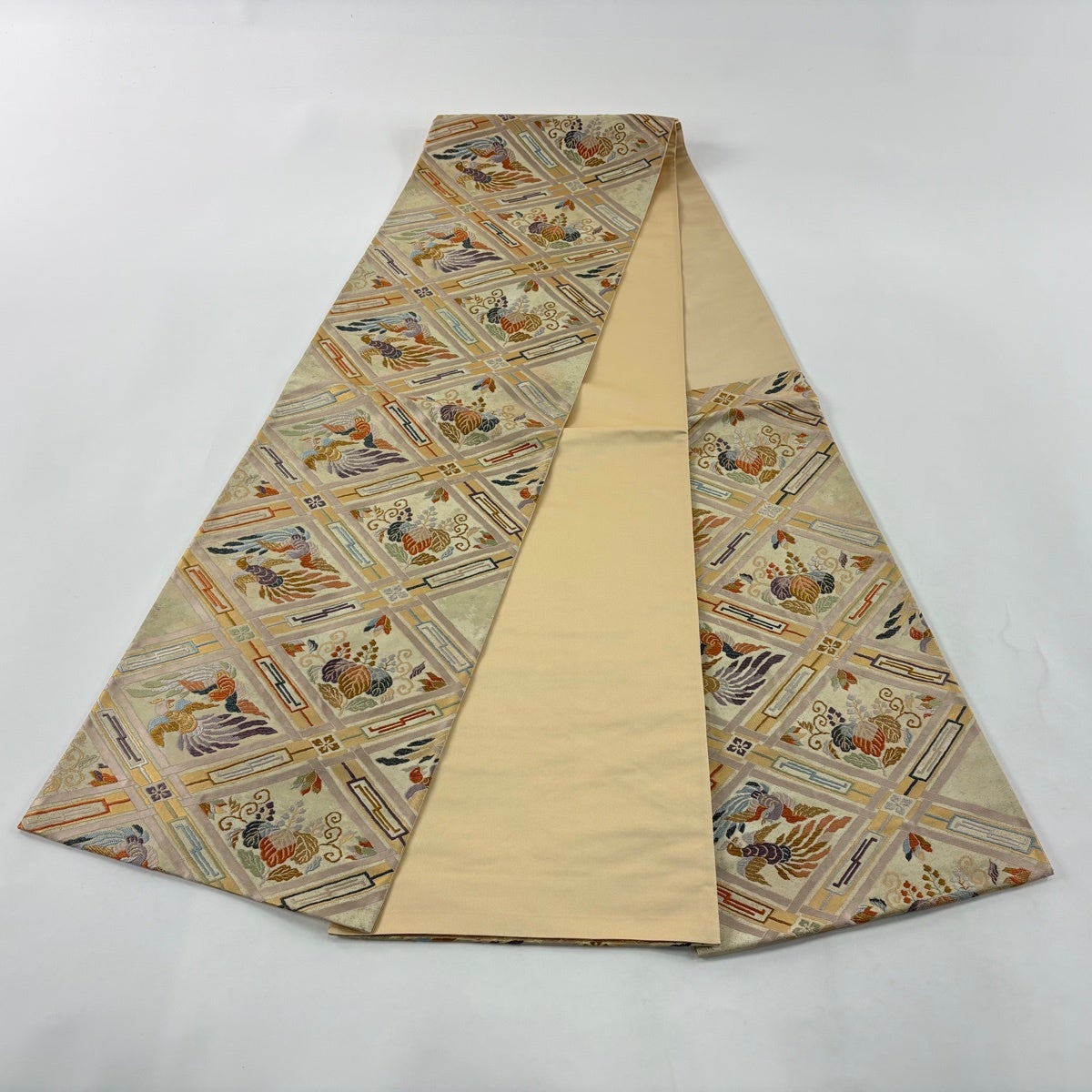 【美品】 袋帯 秀品 鳥 箔 ベージュ 六通 正絹