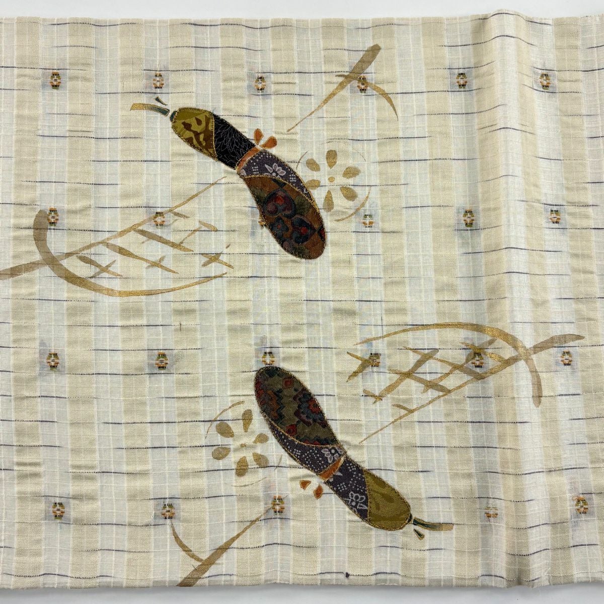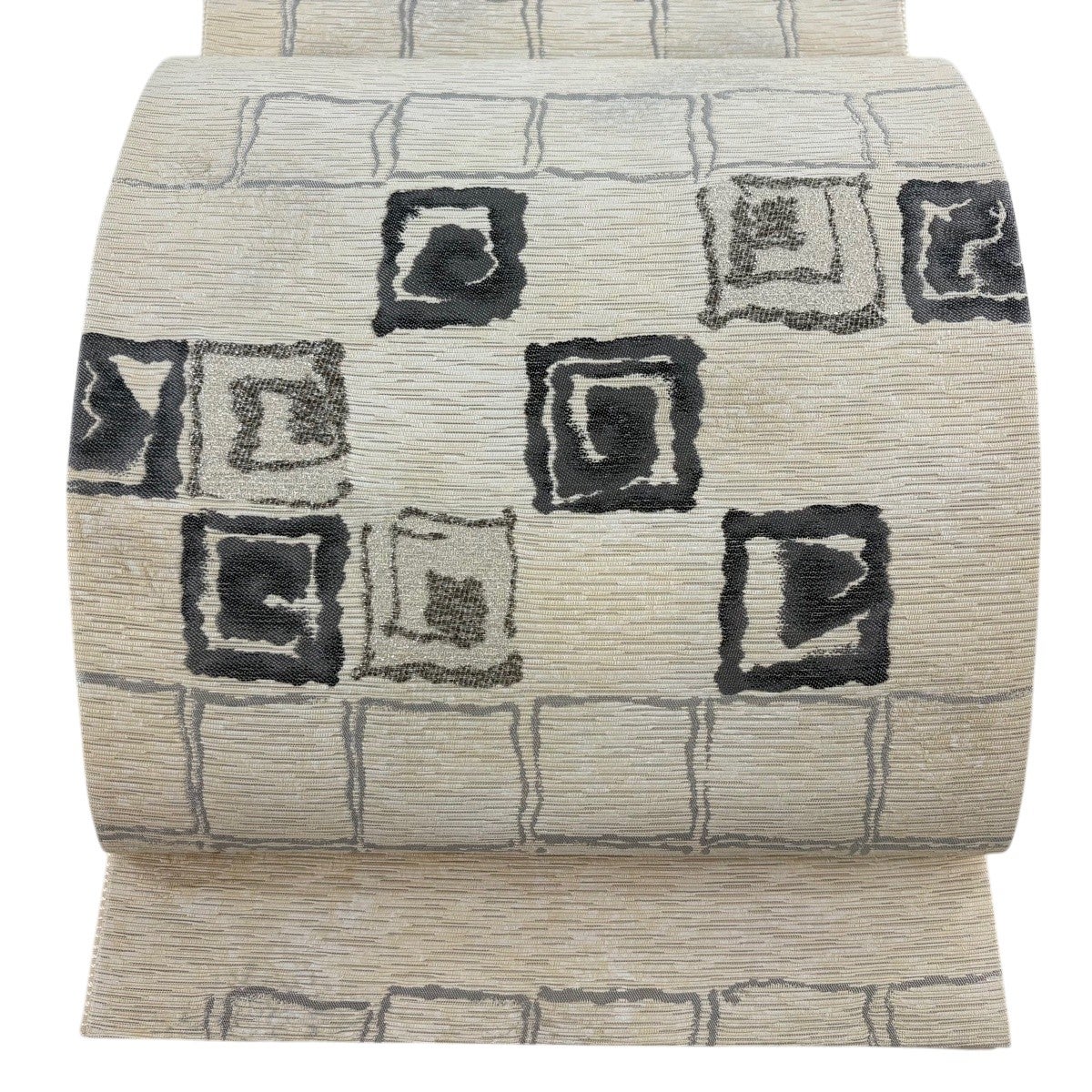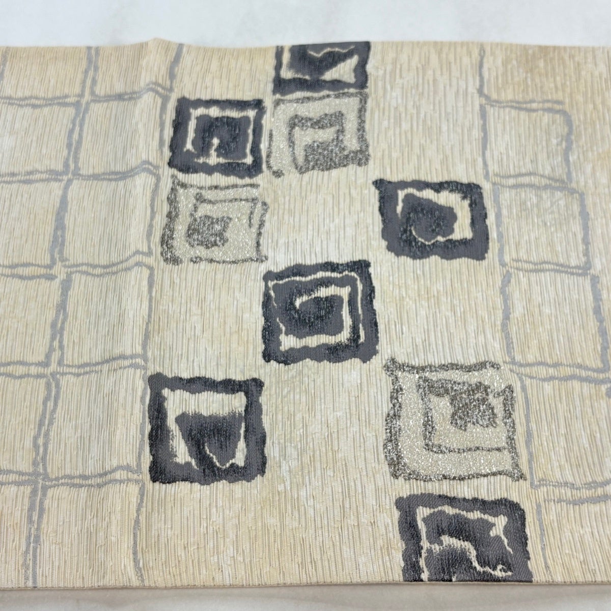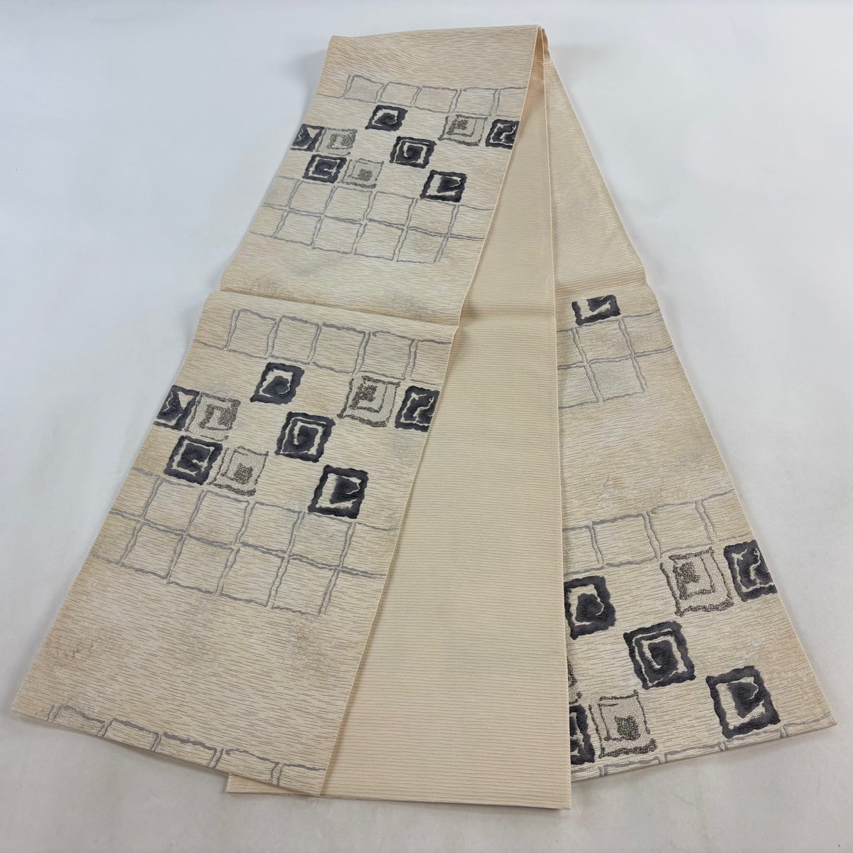 袋名古屋帯 秀品 夏帯 市松 幾何学 ベージュ 正絹