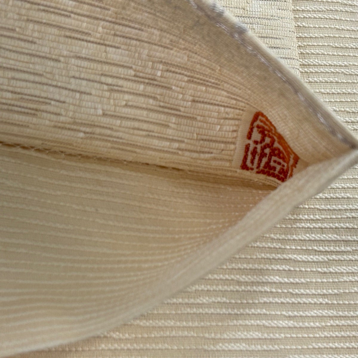 開き名古屋帯 名品 落款あり 夏帯 柿 ベージュ 麻