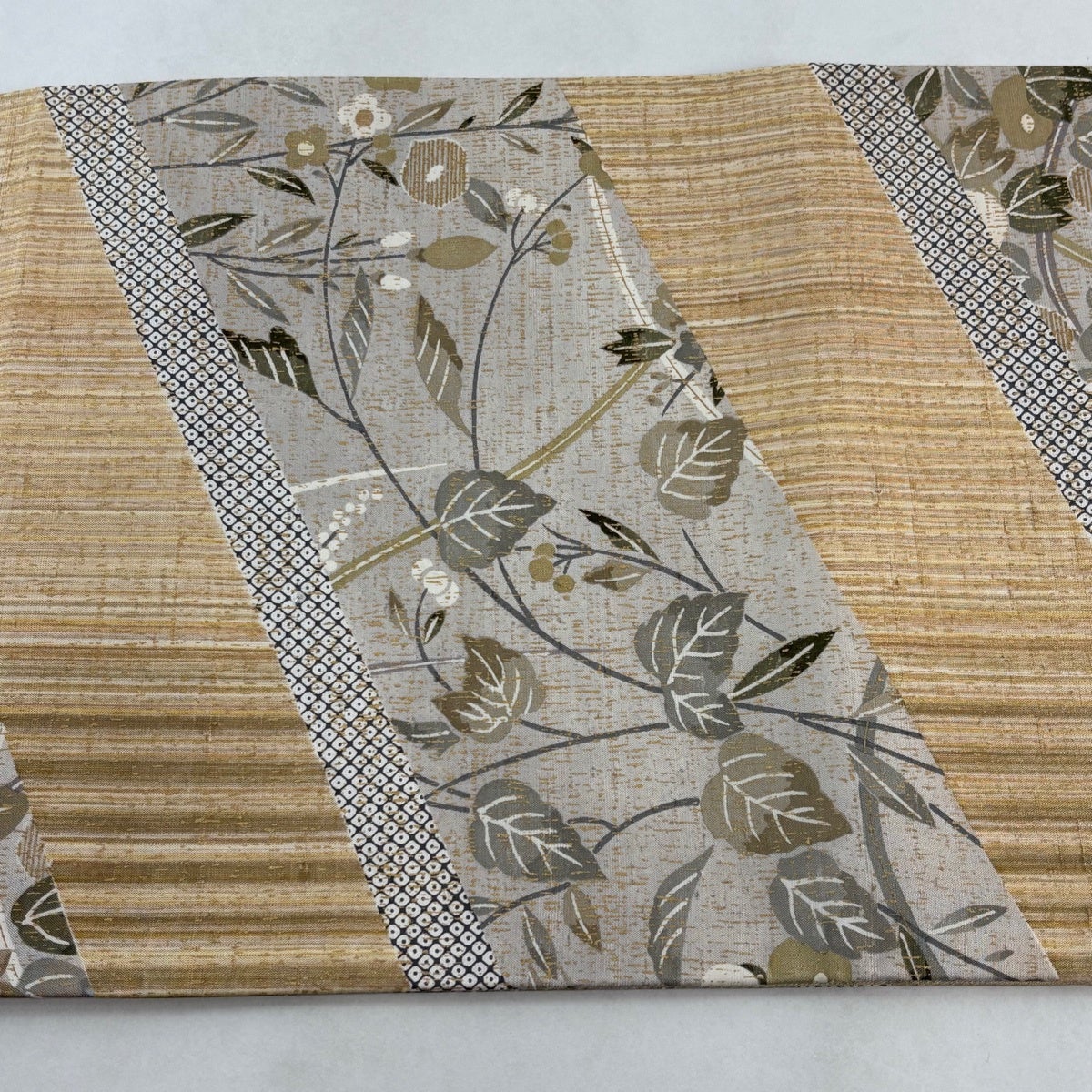 袋帯 秀品 夏帯 笹蔓 縞 箔 ベージュ 全通 正絹