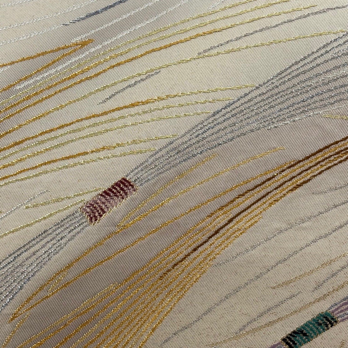 【美品】 袋帯 名品 格子 金糸 ベージュ 全通 正絹