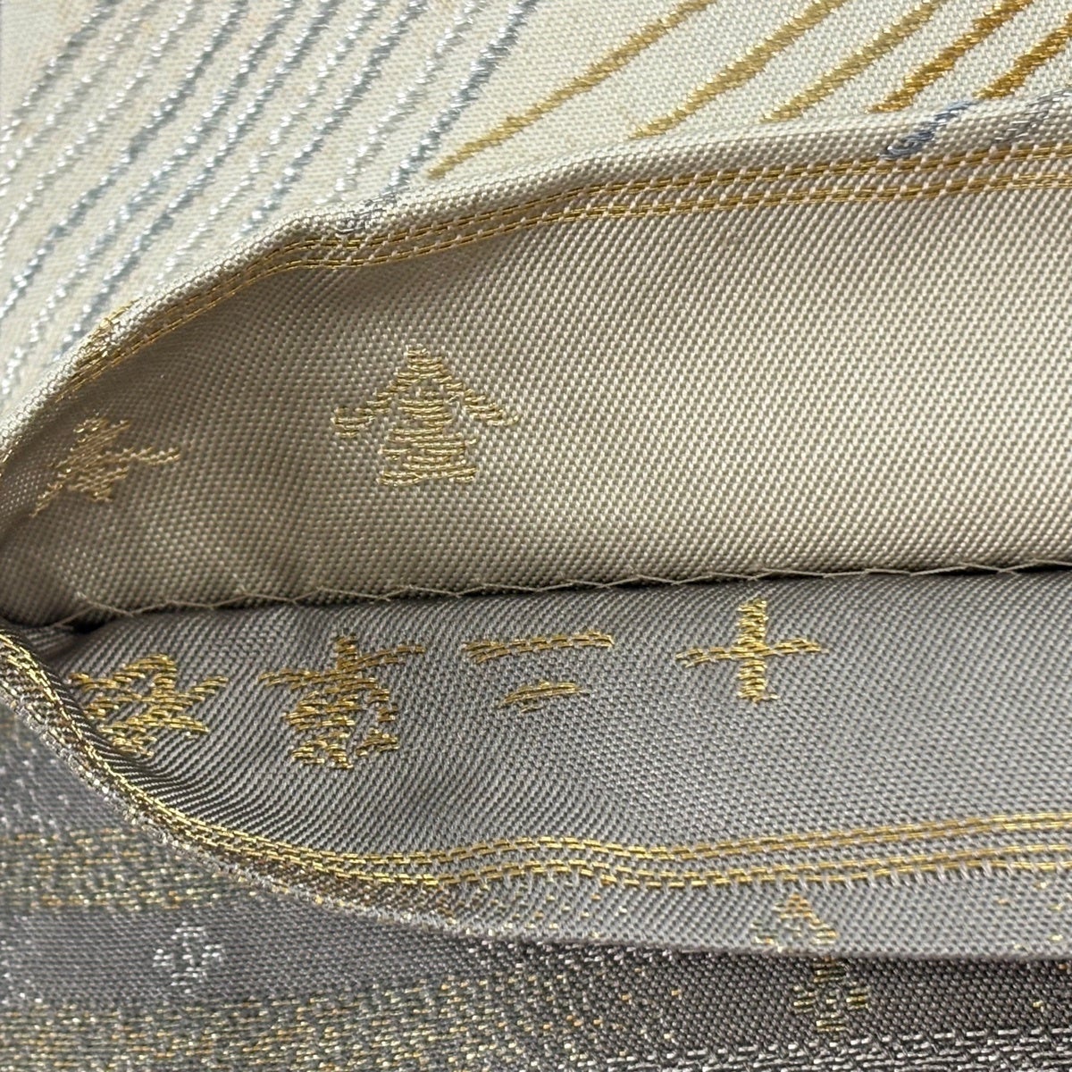 【美品】 袋帯 秀品 彩織割付文 ベージュ 六通 正絹