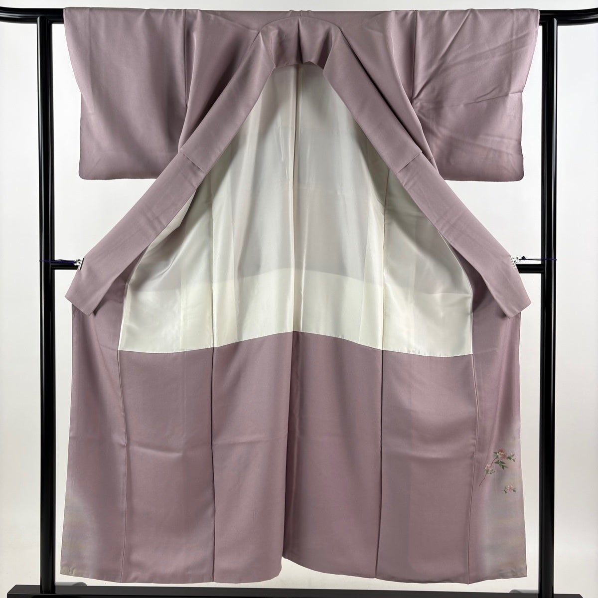 訪問着 身丈159cm 裄丈66.5cm M 袷 滝泰 落款あり 草花 流水 金銀糸 絞り 灰紫 正絹 逸品 一つ紋