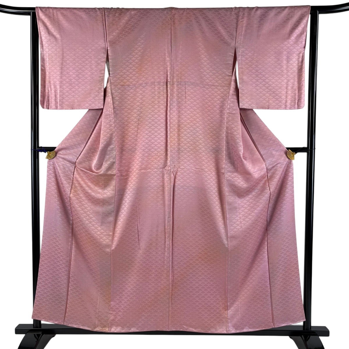 色無地 身丈156.5cm 裄丈63cm S 袷 地紋 ピンク 正絹 優品 一つ紋