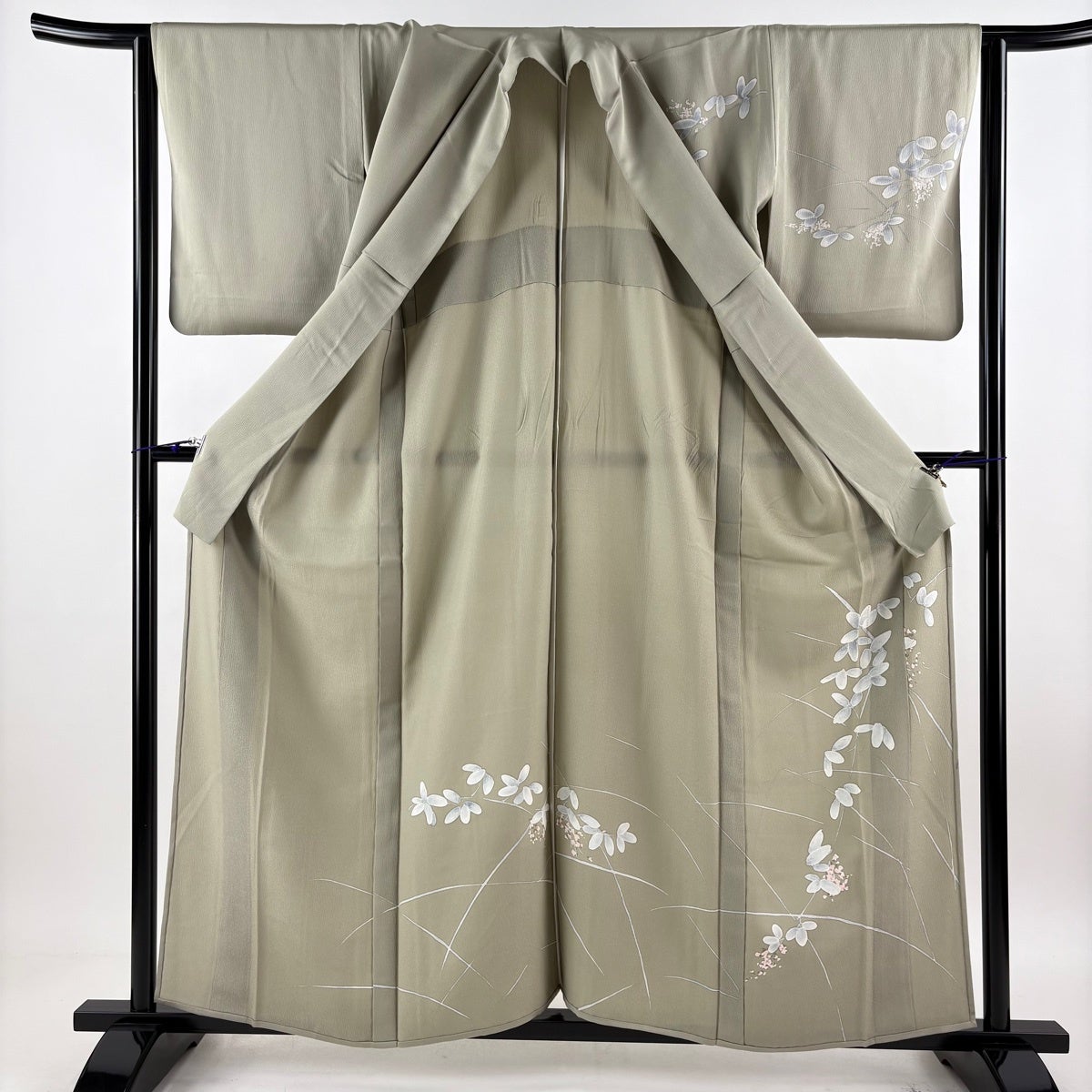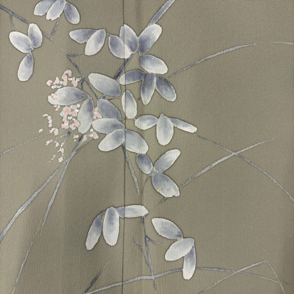 訪問着 身丈156.5cm 裄丈63cm S 袷 舟 柳 金彩 灰緑 正絹 秀品 一つ紋