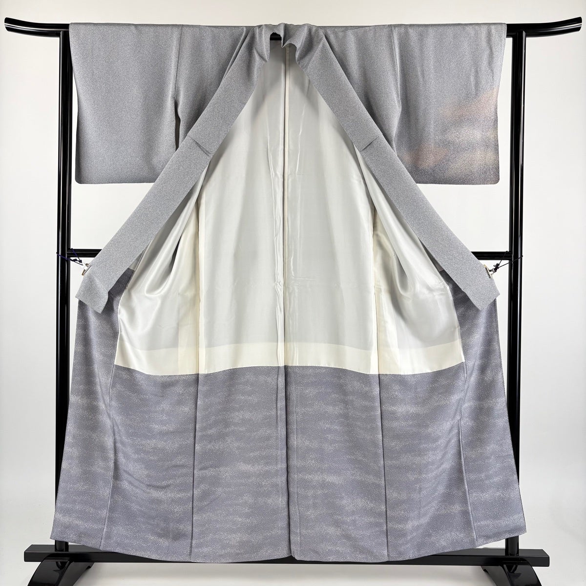 色無地 身丈157cm 裄丈65cm M 袷 源氏いろがさね 青灰色 正絹 秀品 一つ紋