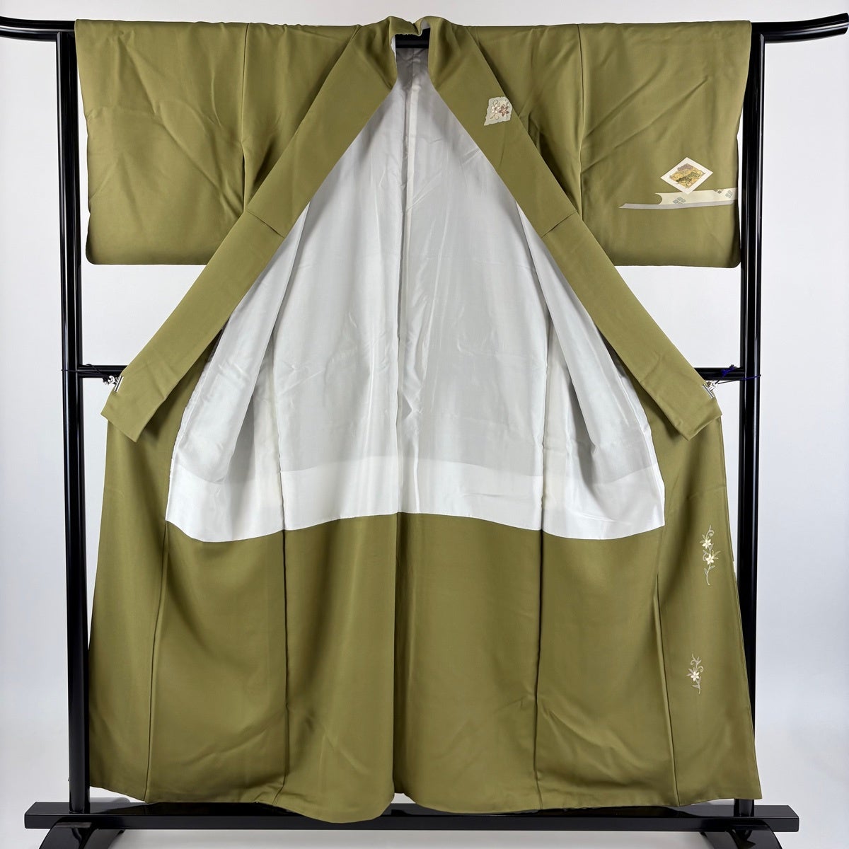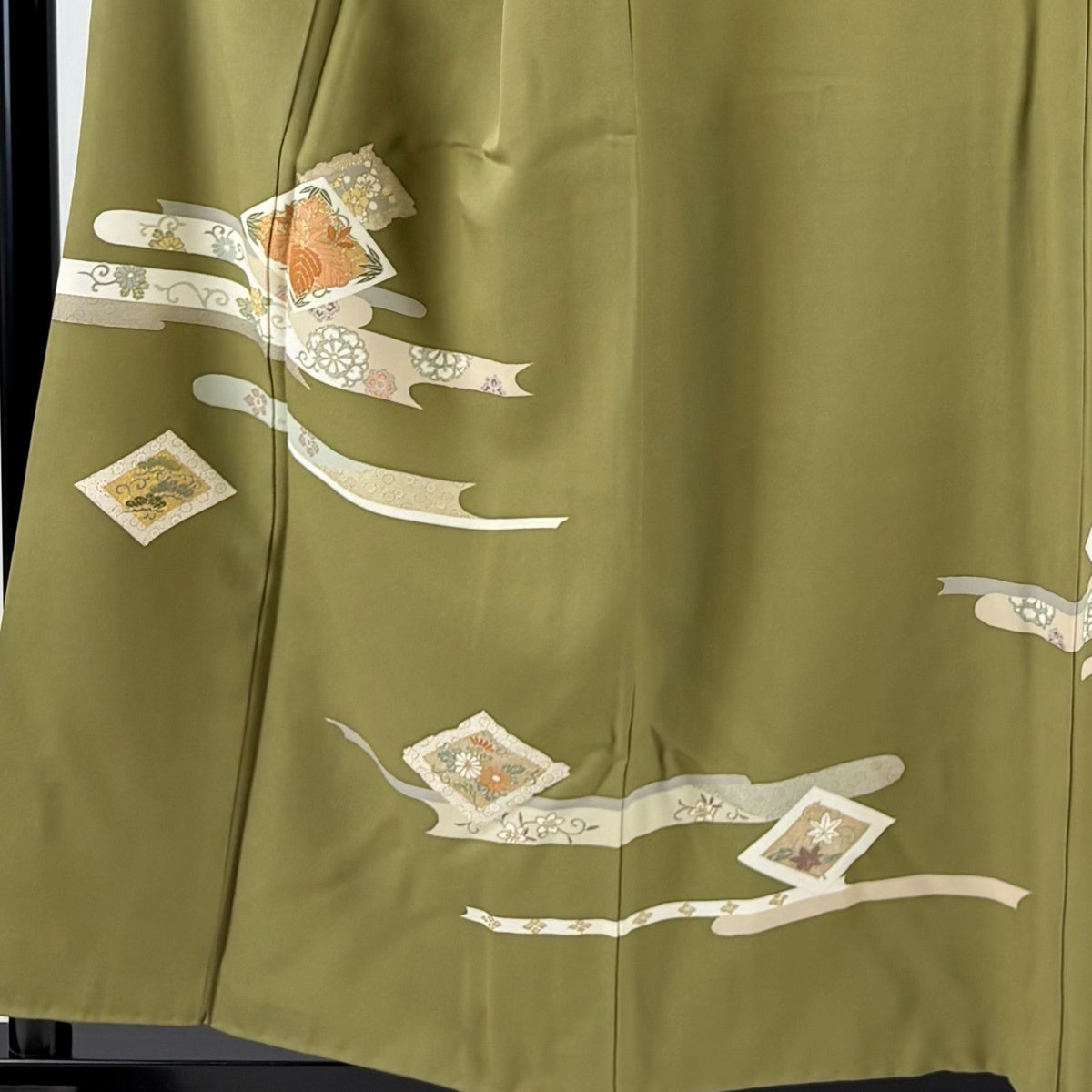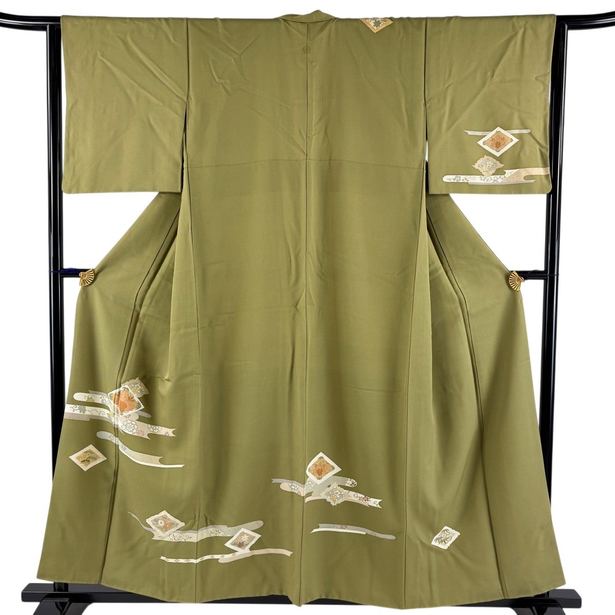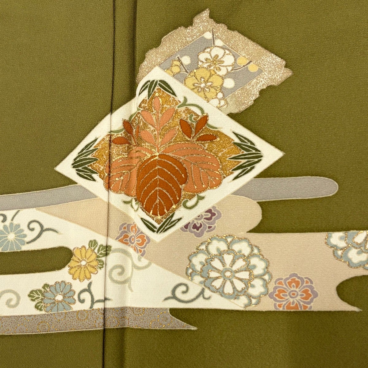 付下げ 身丈156cm 裄丈64cm M 袷 桐 ヱ霞 金銀彩 鶯色 正絹 秀品 一つ紋