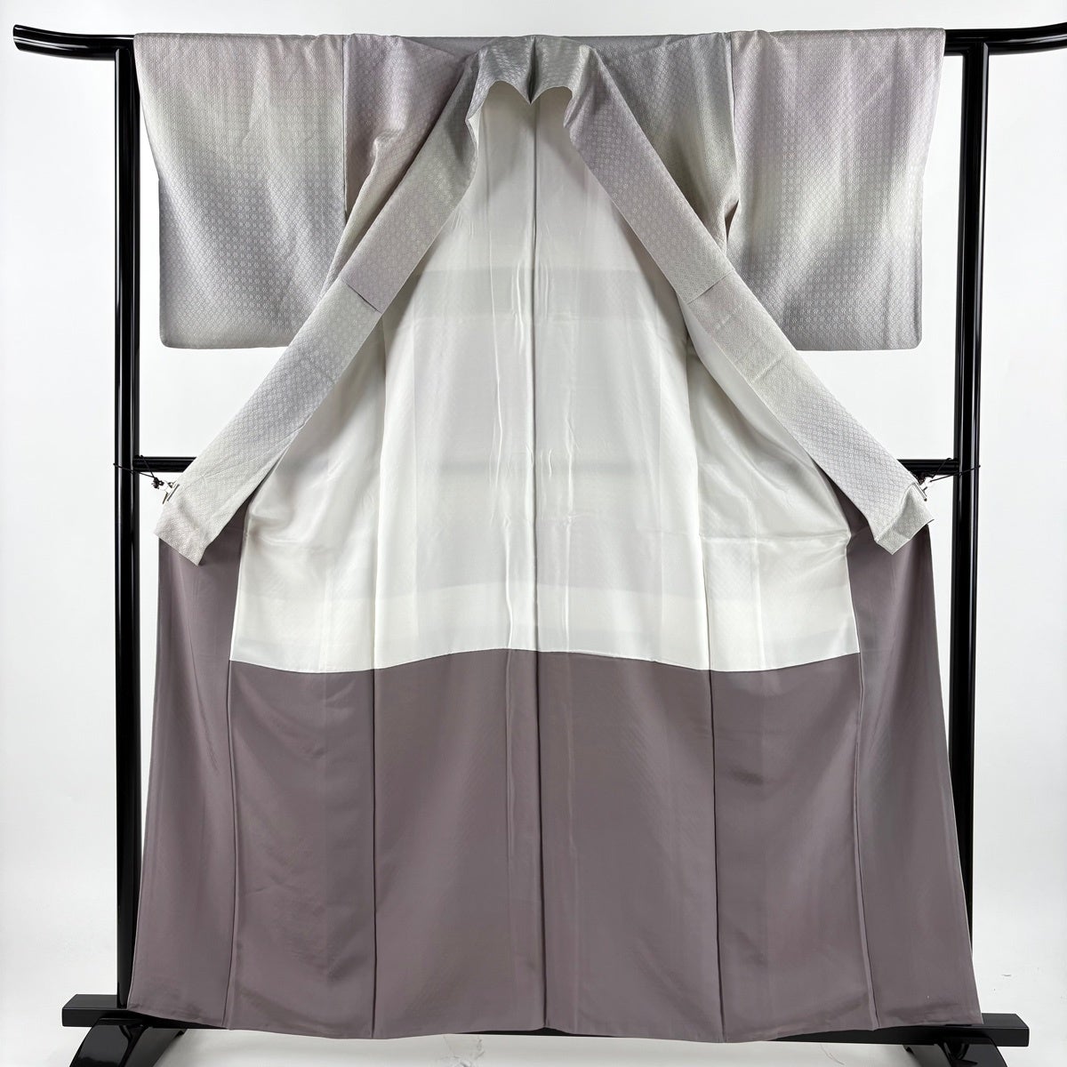 【美品】 色無地 身丈156.5cm 裄丈63cm S 袷 地紋 灰紫 正絹 秀品 一つ紋