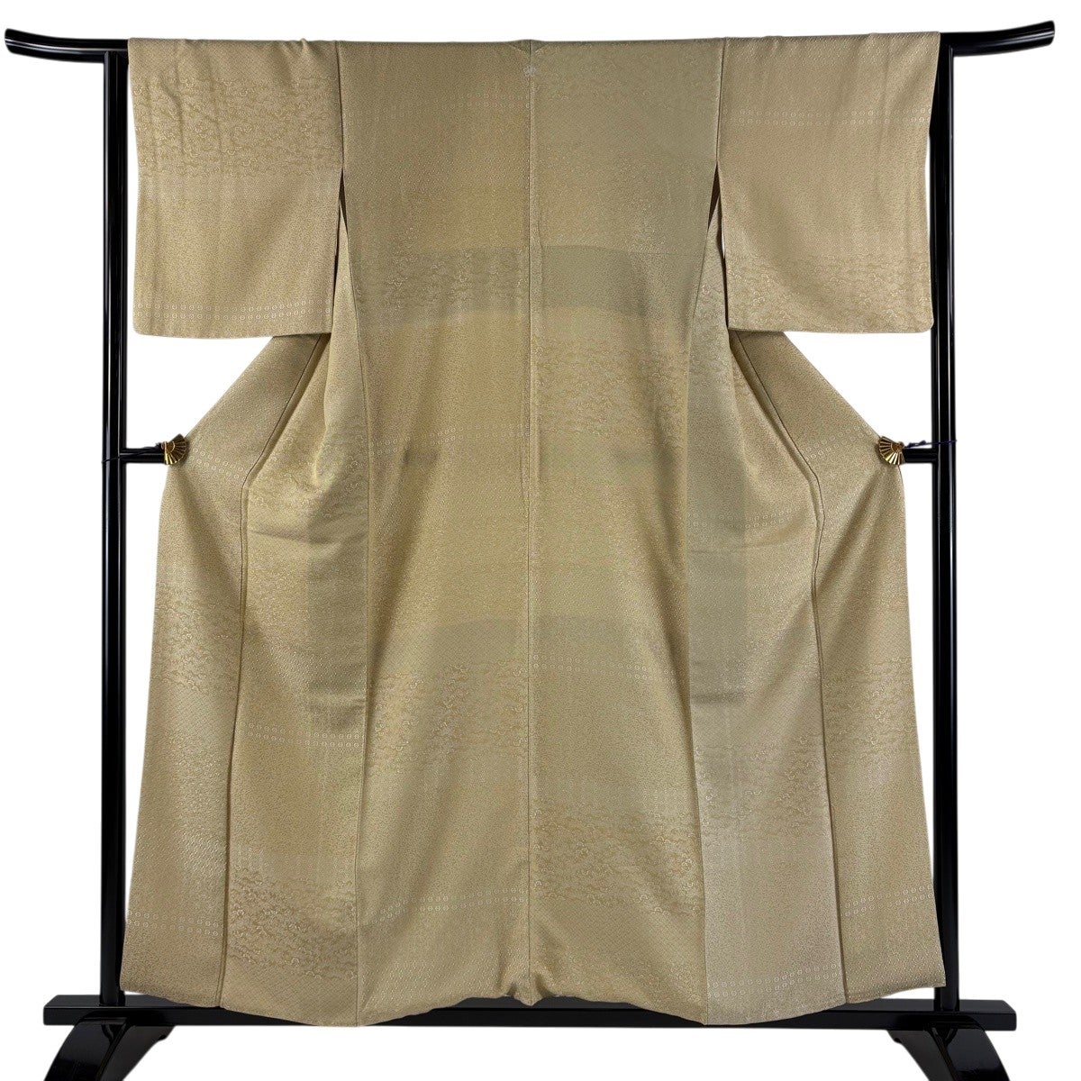 色無地 身丈157cm 裄丈63.5cm S 袷 地紋 ベージュ 正絹 優品 一つ紋