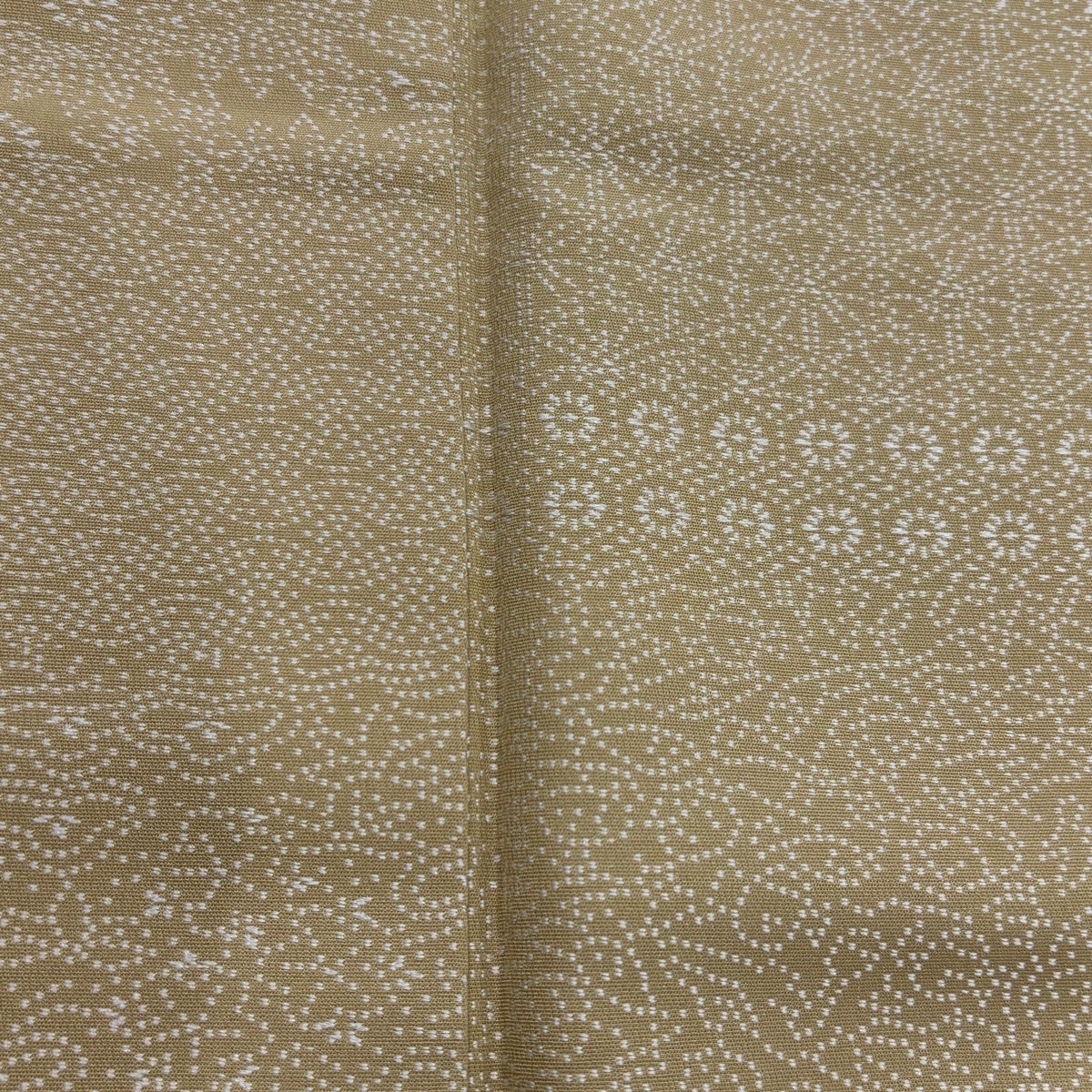小紋 身丈157cm 裄丈64.5cm M 袷 七宝 笹 ベージュ 正絹 秀品 一つ紋