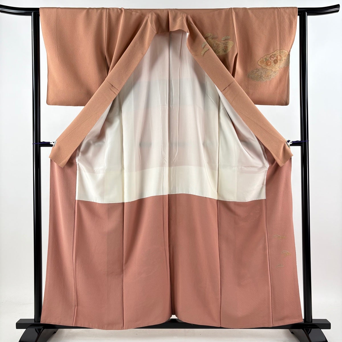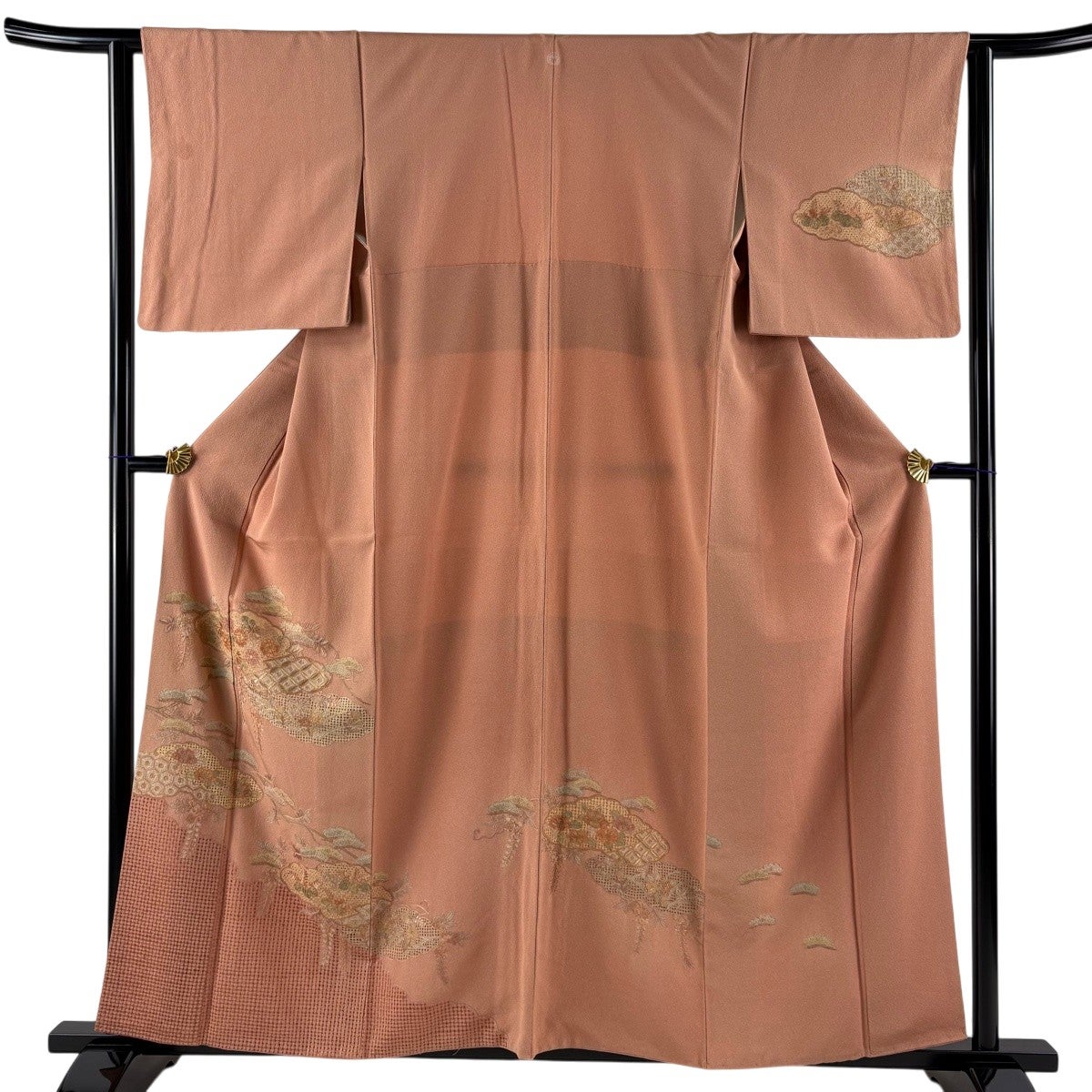 訪問着 身丈156cm 裄丈65.5cm M 単衣 短冊 鶴 金糸 金彩 薄小豆 正絹 秀品 一つ紋