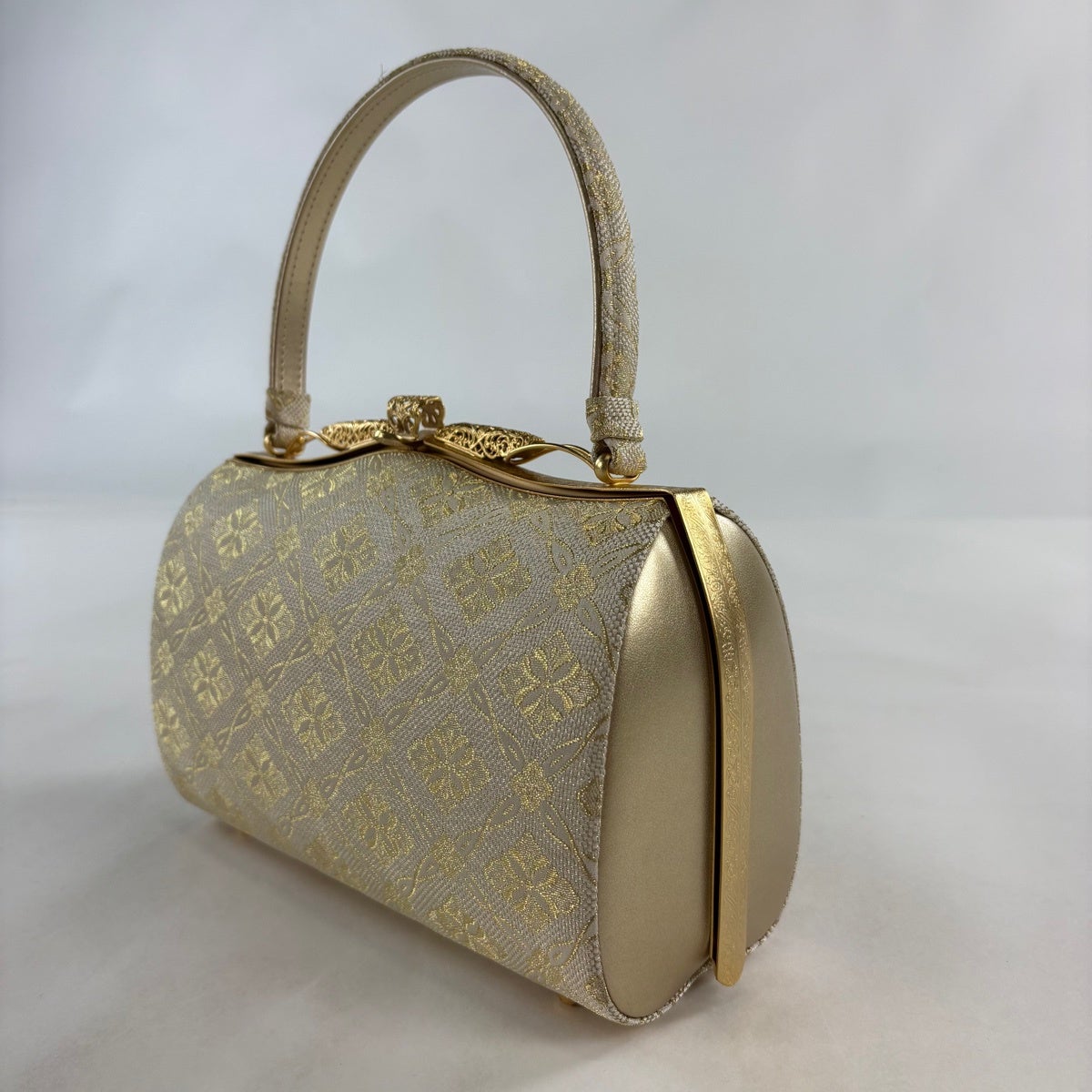 名古屋帯 秀品 松葉仕立て 八寸名古屋帯 夏帯 絽 トンネル仕立て 幾何学 金糸 ベージュ 正絹