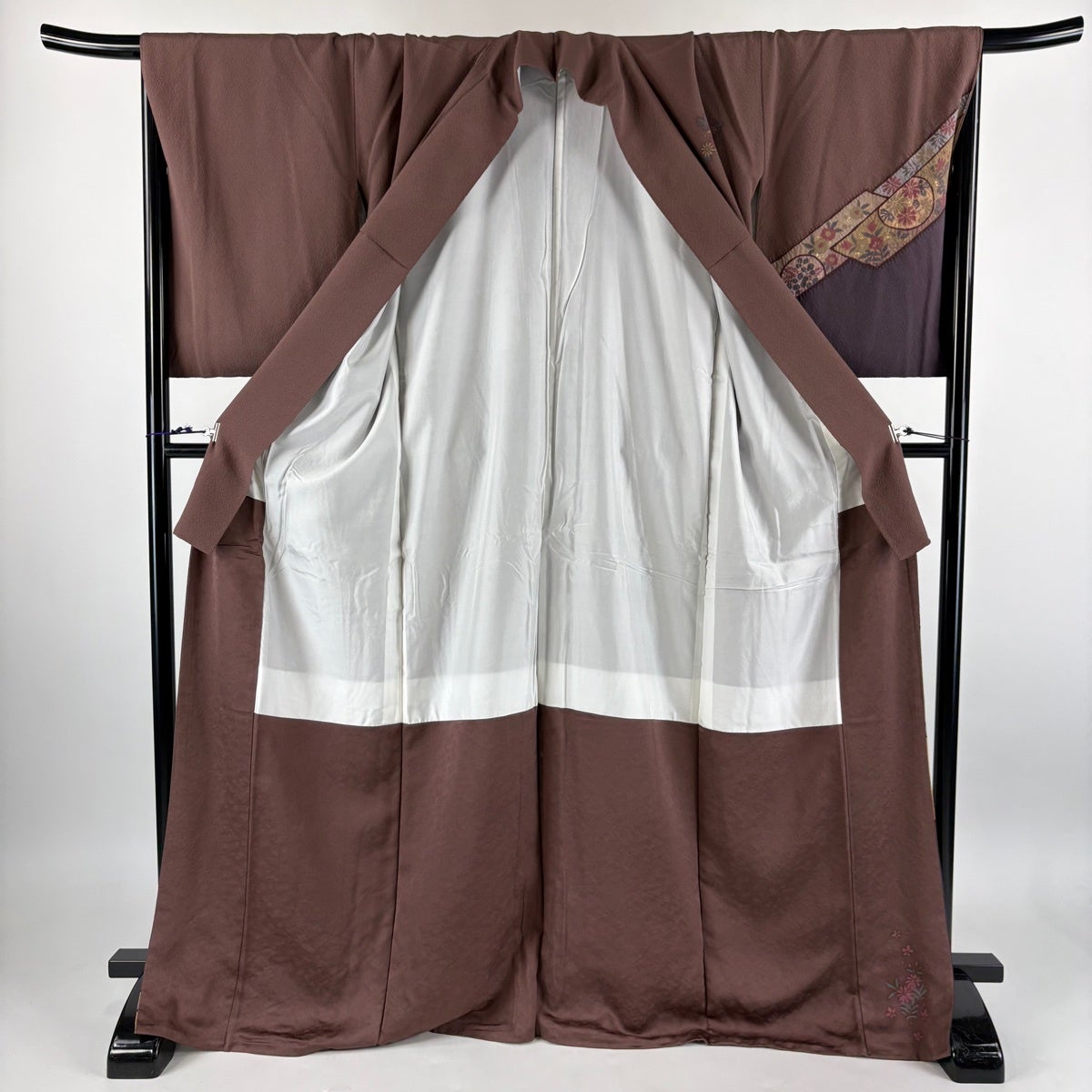 訪問着 身丈159cm 裄丈63.5cm S 袷 桜 花びら 日本刺繍 濃紫 正絹 逸品