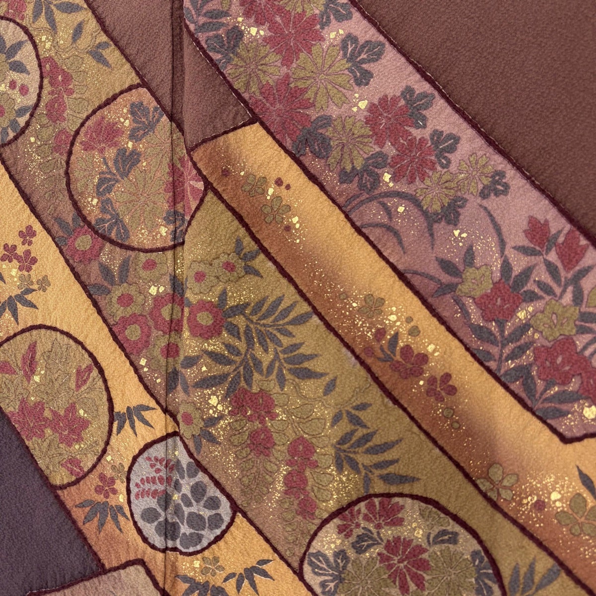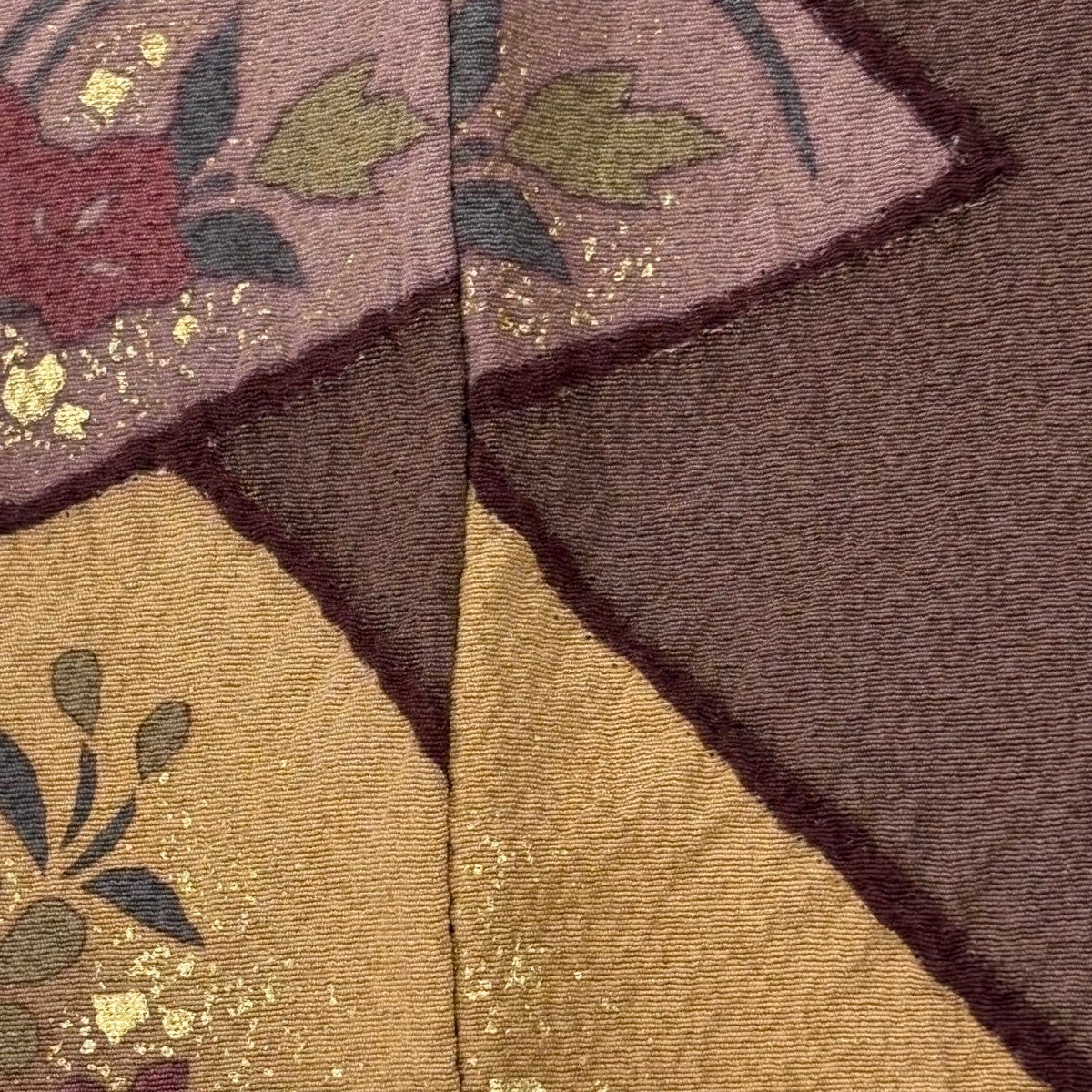 【美品】 訪問着 身丈167cm 裄丈69cm L 袷 草花 菱 刺繍 金通し 紫 正絹 逸品 一つ紋