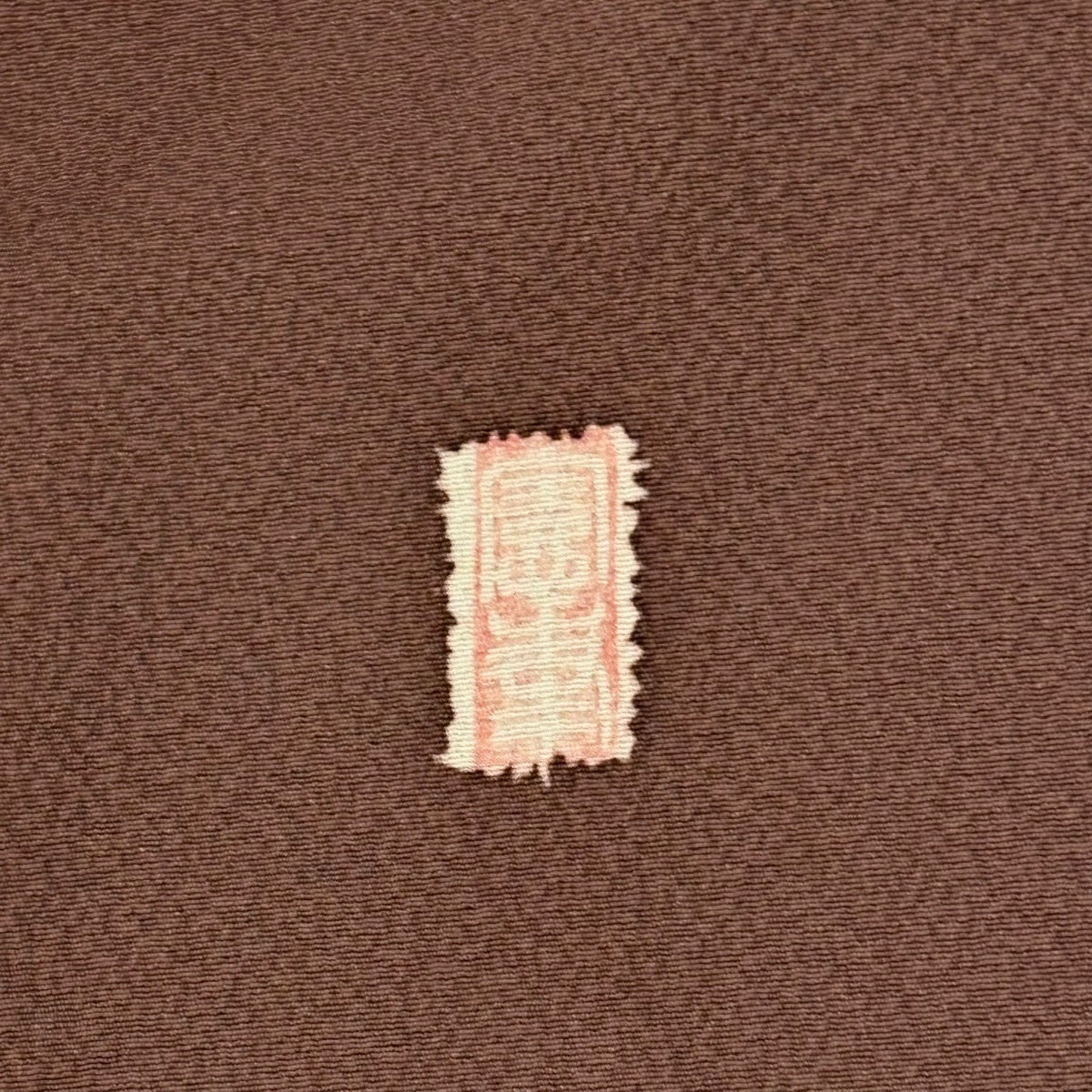 【美品】 小紋 身丈163cm 裄丈65.5cm M 袷 本場結城紬地 奥順 証紙あり 流水 花 薄茶色 正絹 逸品