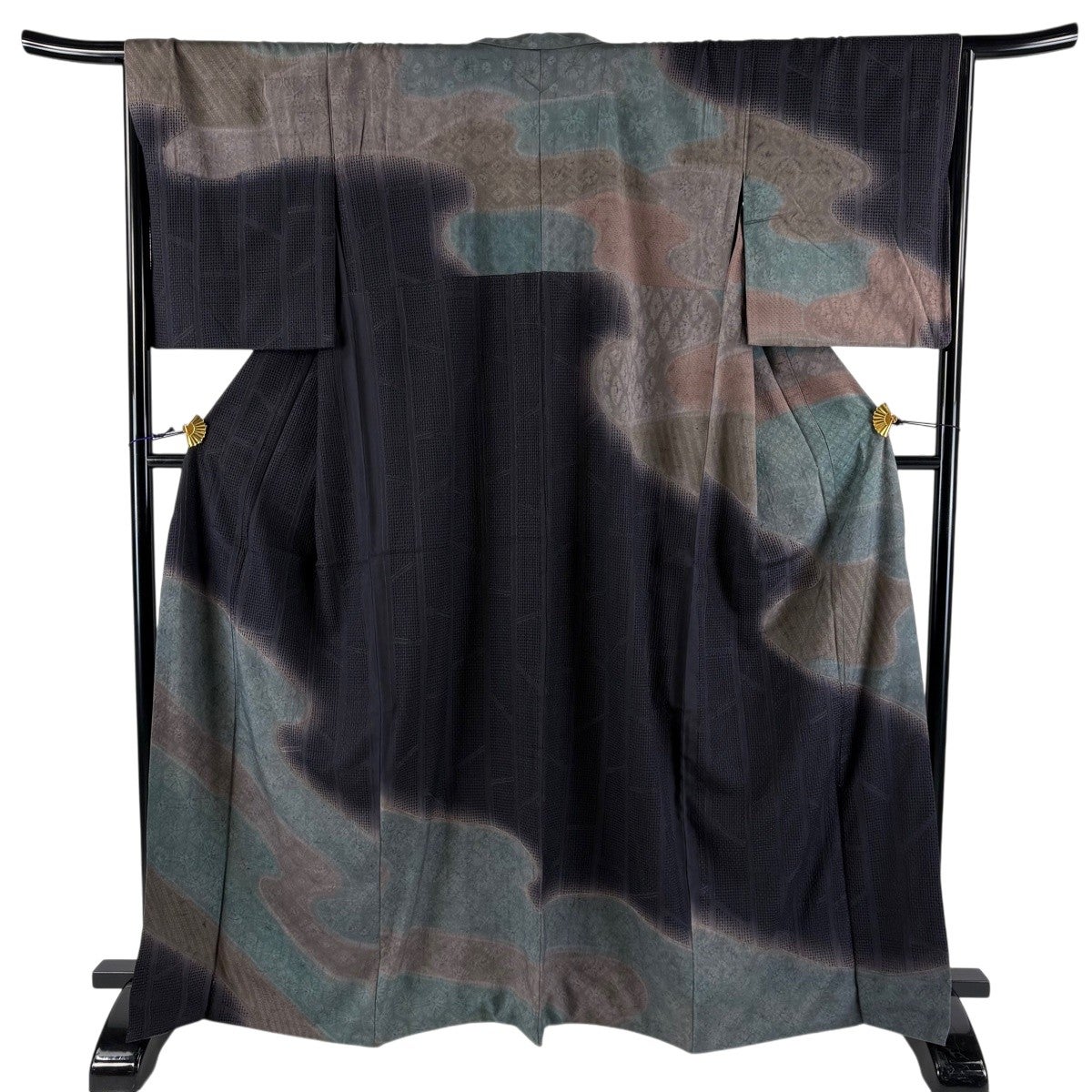 【美品】 訪問着 身丈158.5cm 裄丈65cm M 袷 徳永憲峯 やまと 落款あり 辻が花 金通し 金彩 青灰色 正絹 逸品