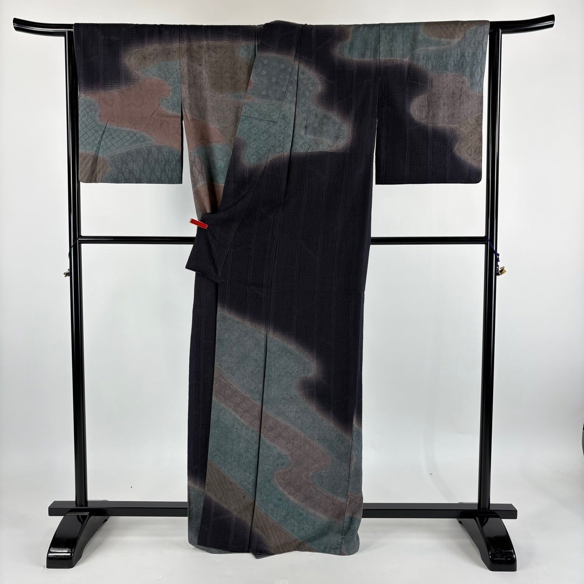 小紋 身丈167.5cm 裄丈66cm M 袷 紬地 幾何学模様 絞り 南部茜染め 赤茶 正絹 逸品