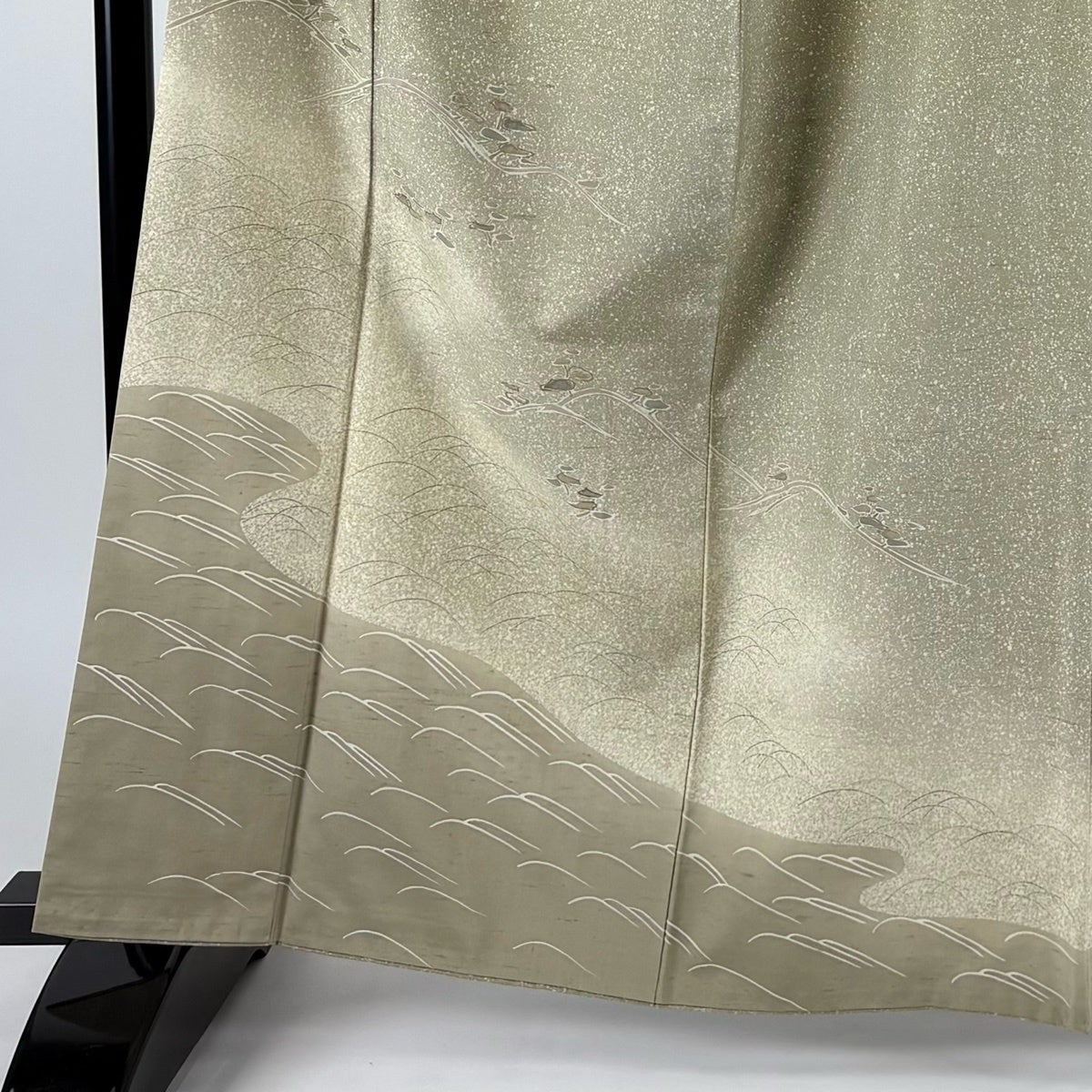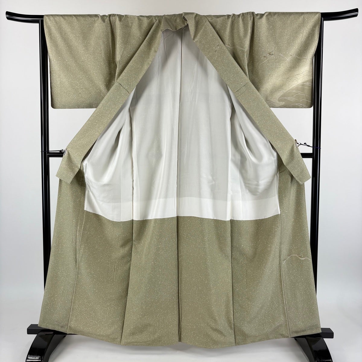 訪問着 身丈157cm 裄丈65cm M 袷 蜀江文 松竹梅 刺繍 鶯色 正絹 逸品 一つ紋