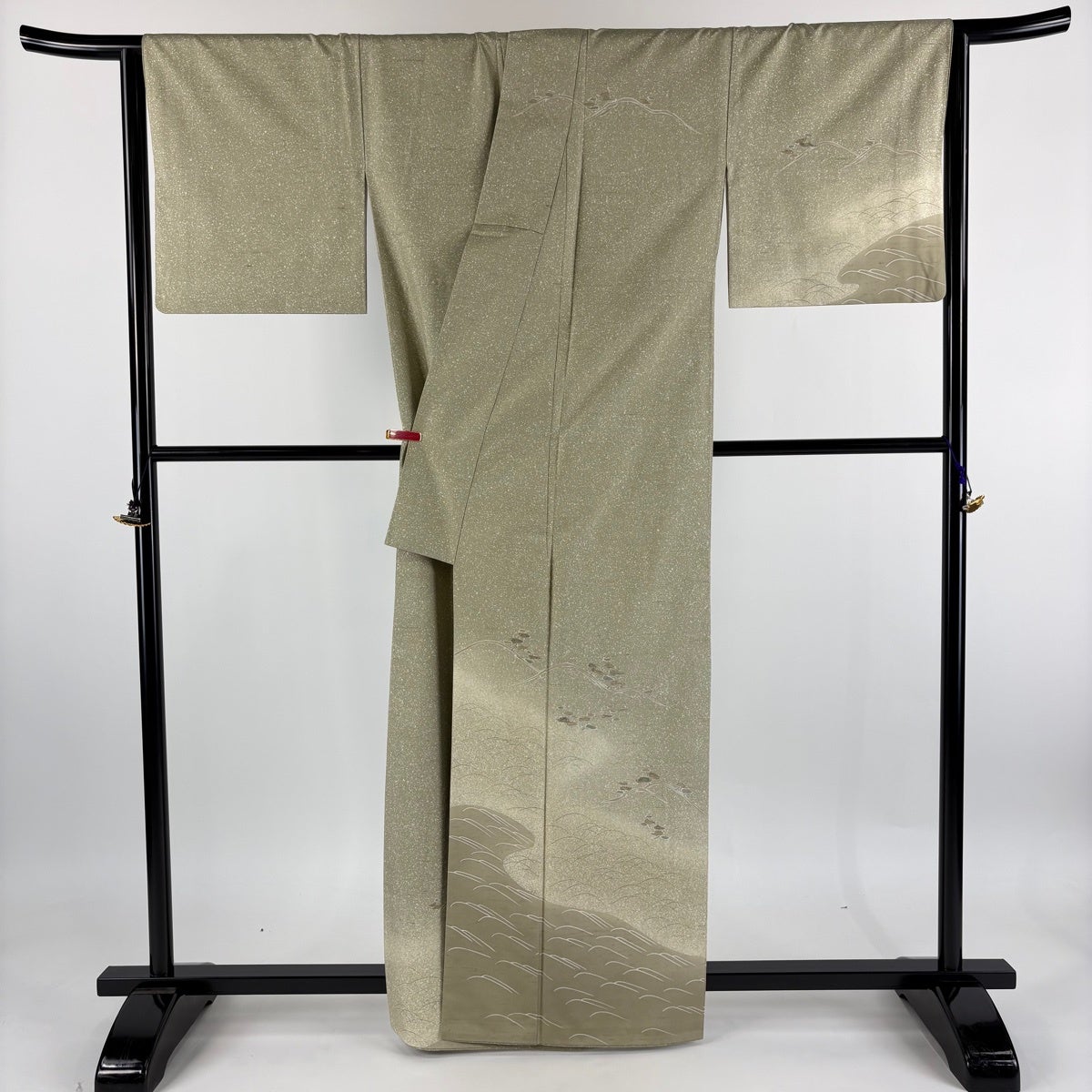 訪問着 身丈164.5cm 裄丈69cm L 袷 大島紬地 証紙あり 竹 刺繍 金糸 ベージュ 正絹 逸品