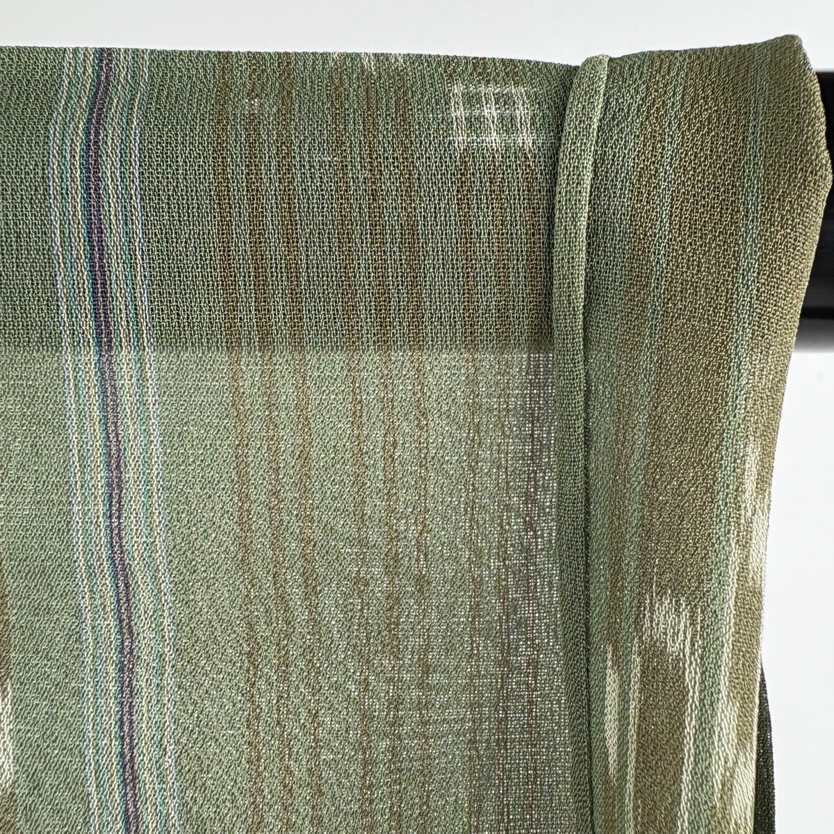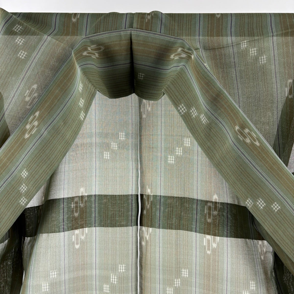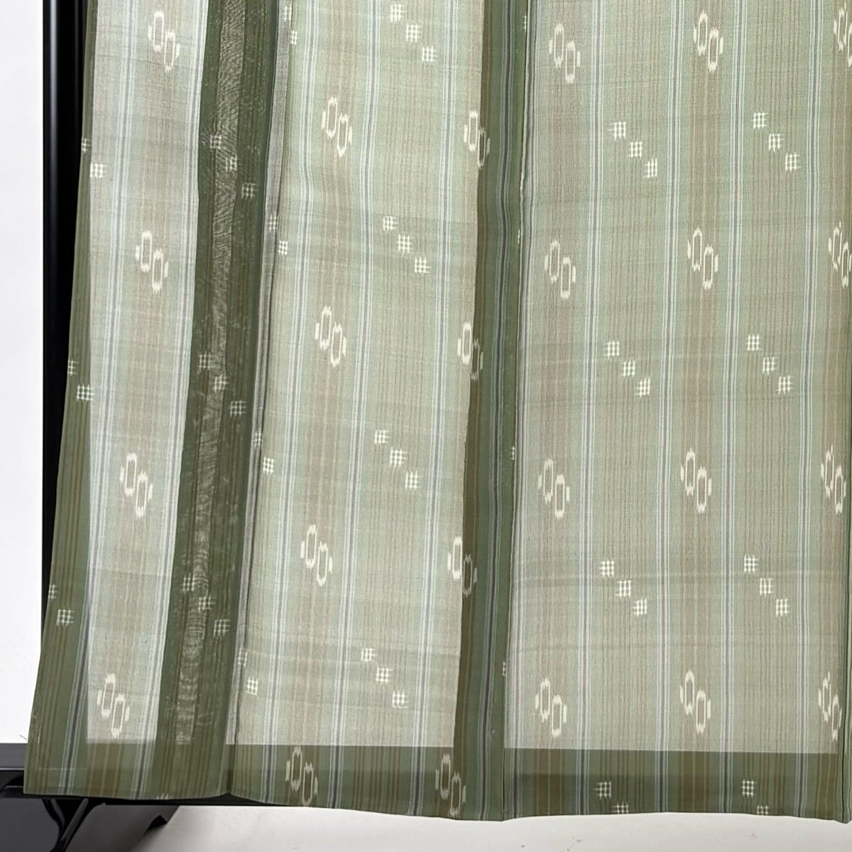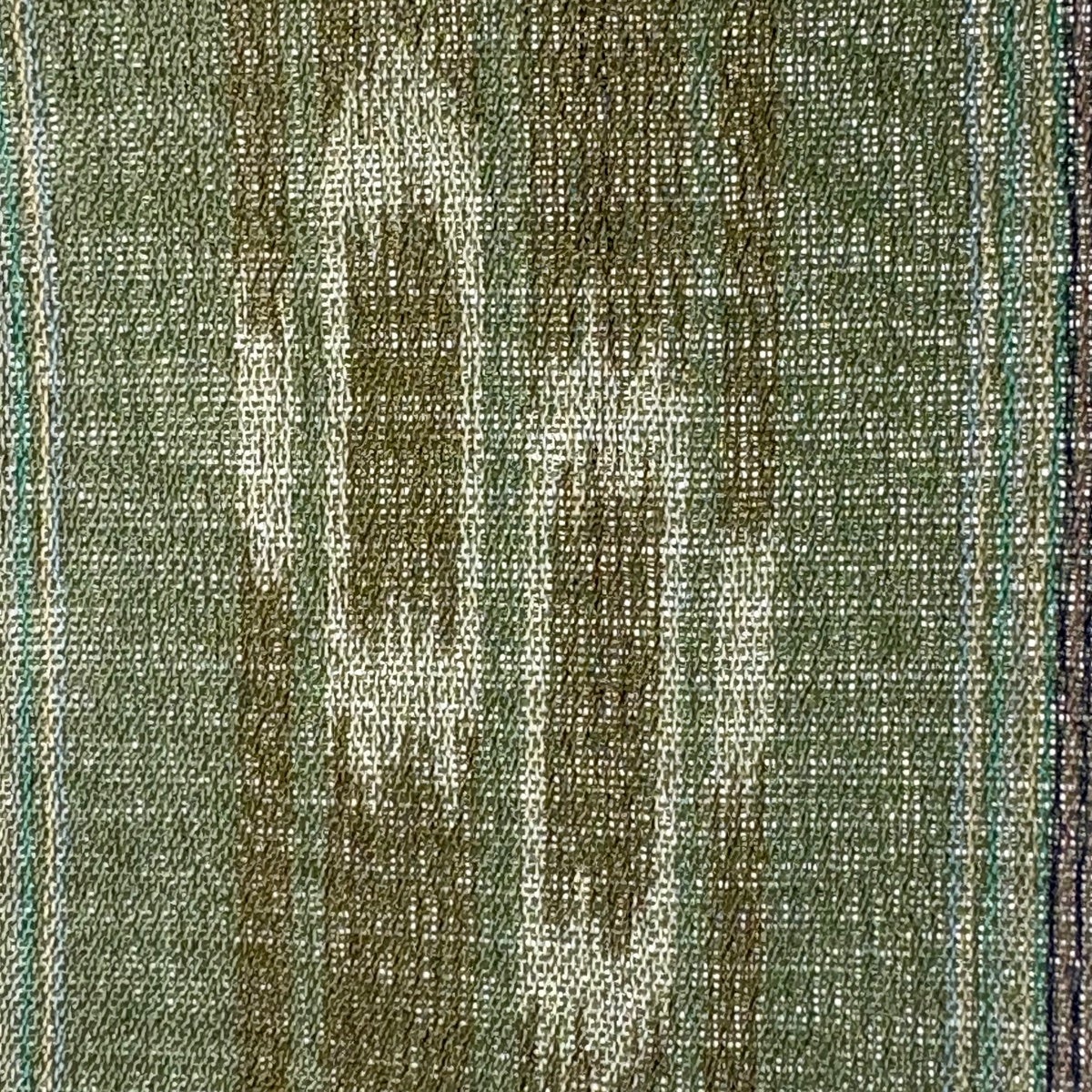 紬 身丈162cm 裄丈65cm M 薄物 夏紬 琉球かすり 証紙あり 縞 幾何学 よもぎ色 正絹 逸品