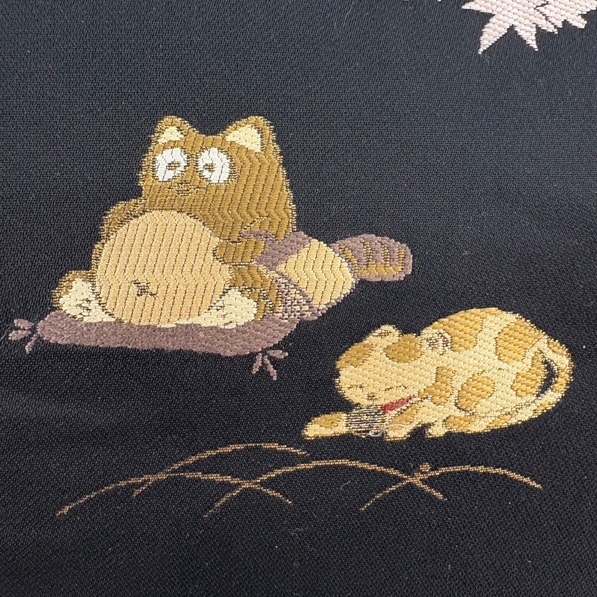 【美品】 袋名古屋帯 逸品 三毛猫 椿 黒 正絹
