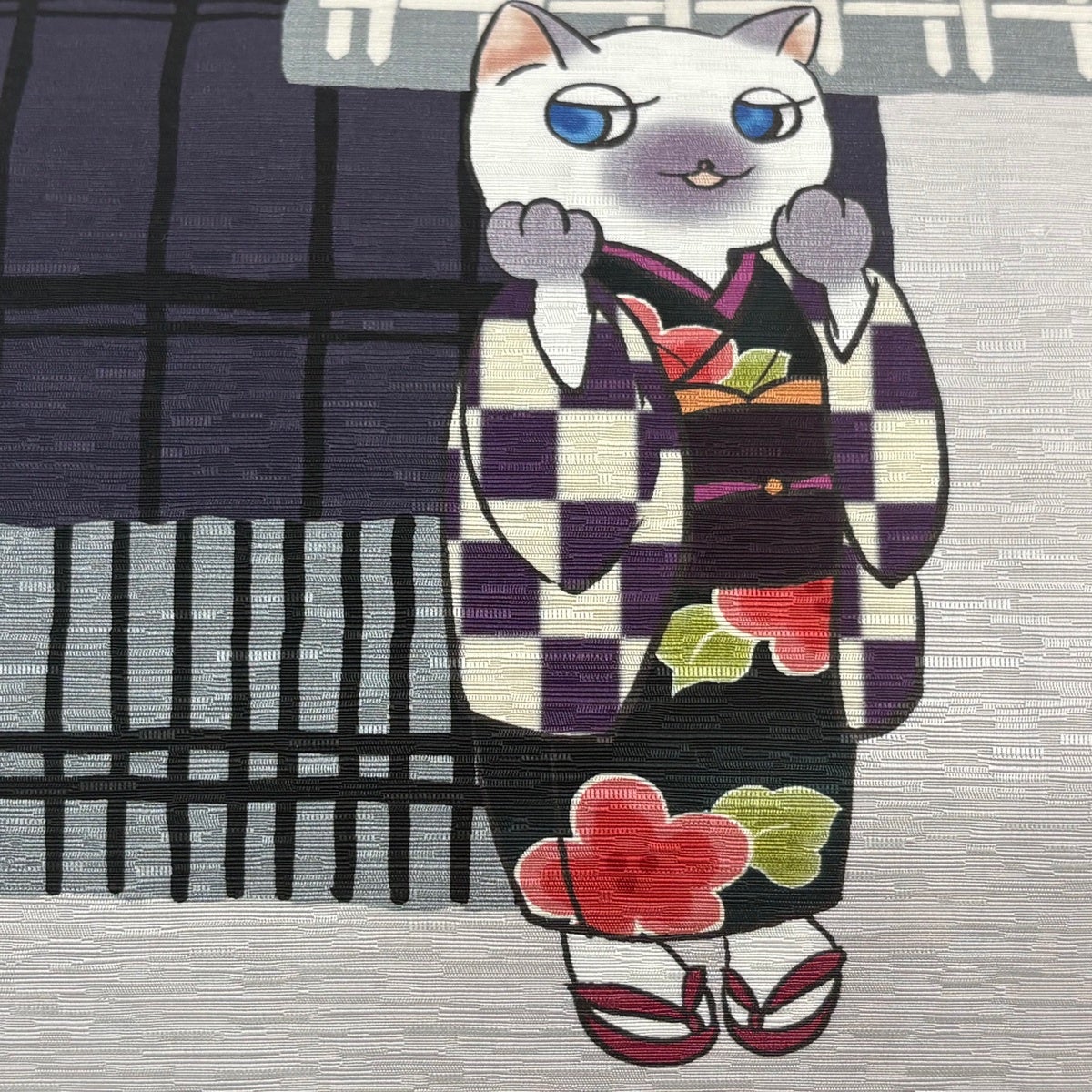 【美品】 袋名古屋帯 逸品 猫 格子 灰紫 正絹