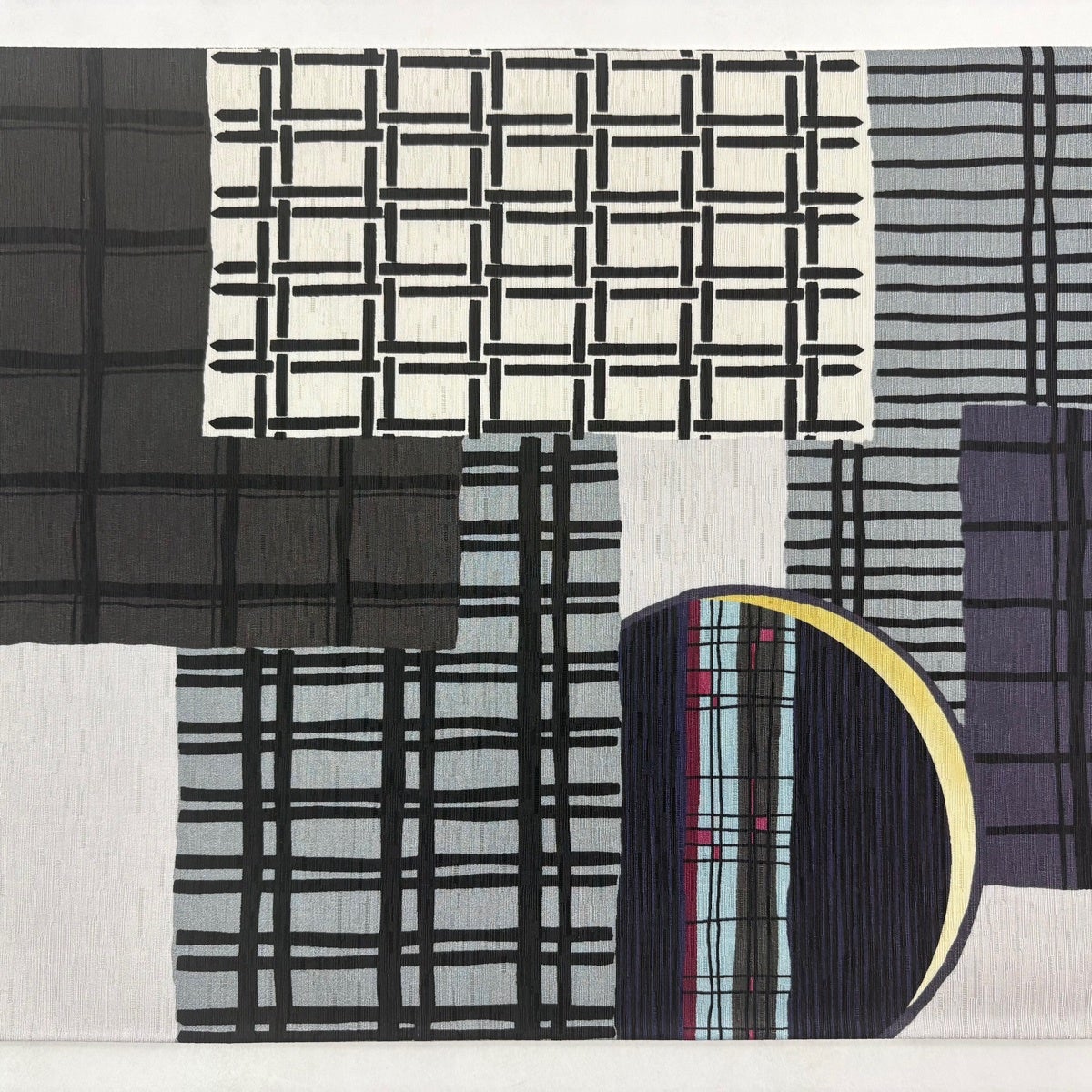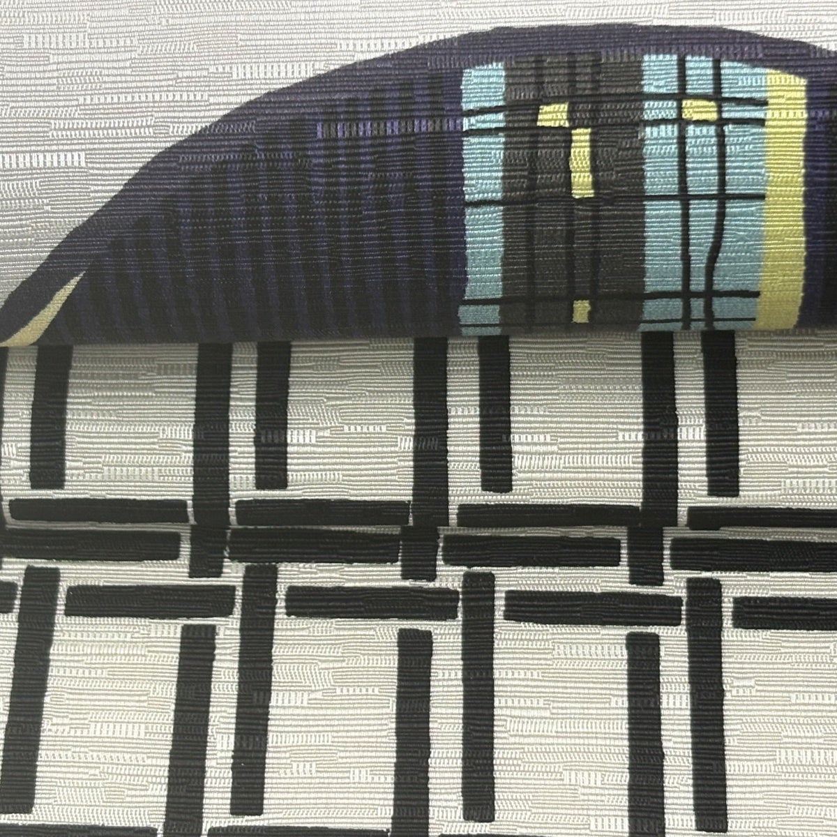 【美品】 袋帯 逸品 幾何学 箔 黒灰 六通 正絹
