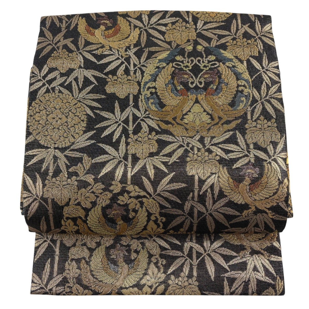 【美品】 袋帯 逸品 山口美術織物 落款あり 関西仕立て 鳳凰 唐草 金銀糸 金茶 六通 正絹