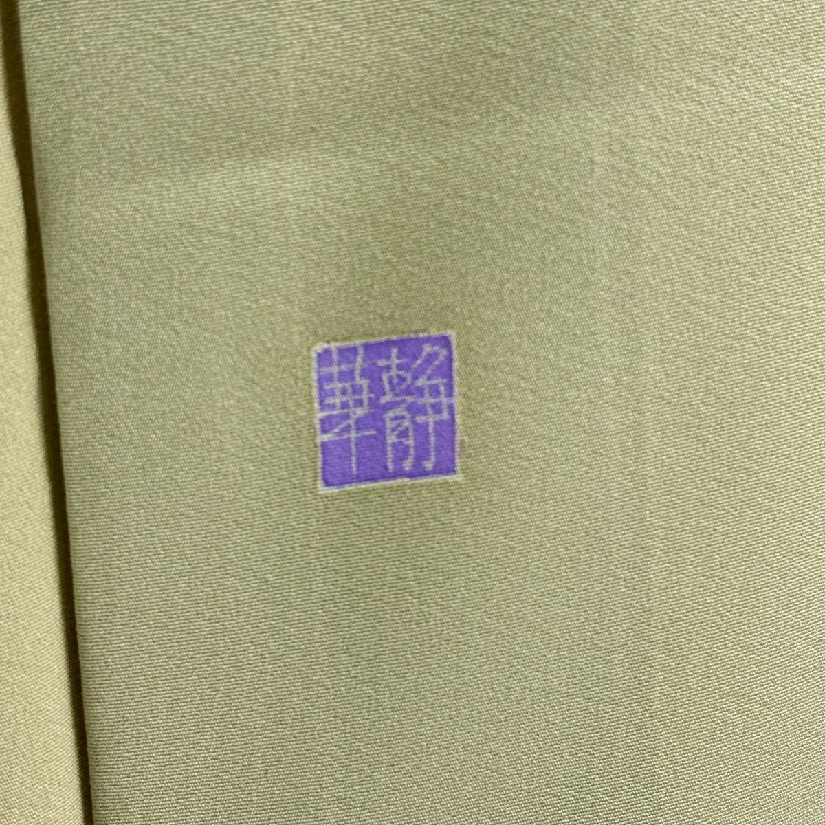 訪問着 身丈158.5cm 裄丈67cm M 袷 中村乃武夫 落款あり 橘 松葉 金彩 染め分け 薄緑 正絹 逸品
