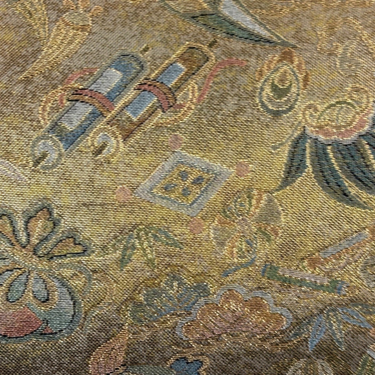 【美品】 袋帯 逸品 草花 金糸 箔 クリーム 六通 正絹