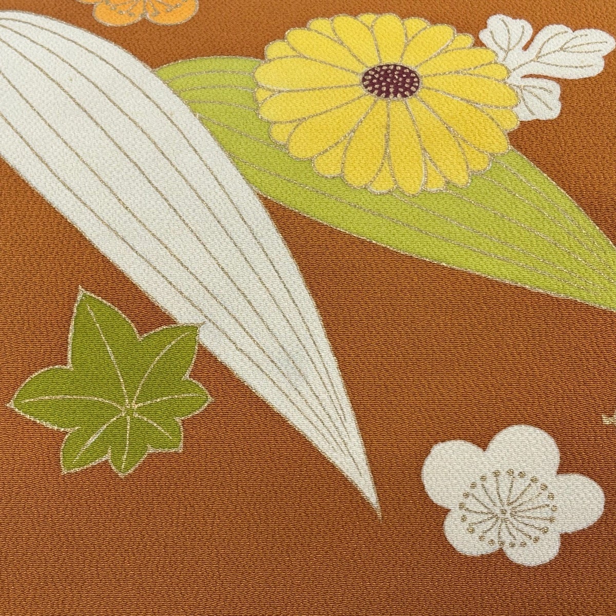 【美品】 袋帯 逸品 草花 金銀彩 薄茶色 お太鼓柄 正絹