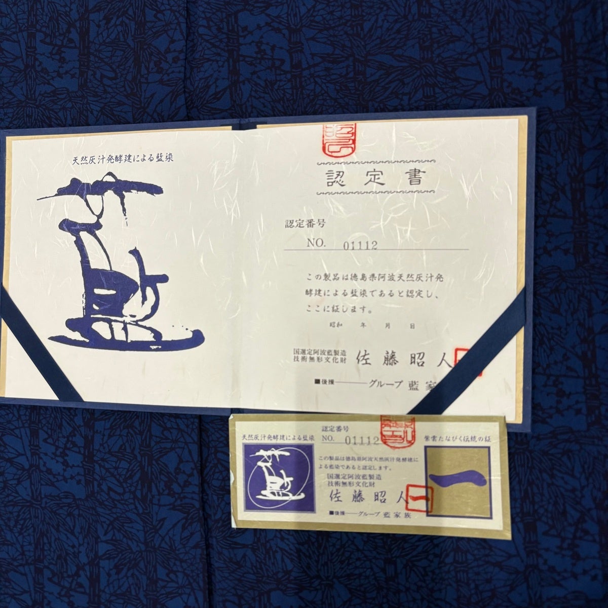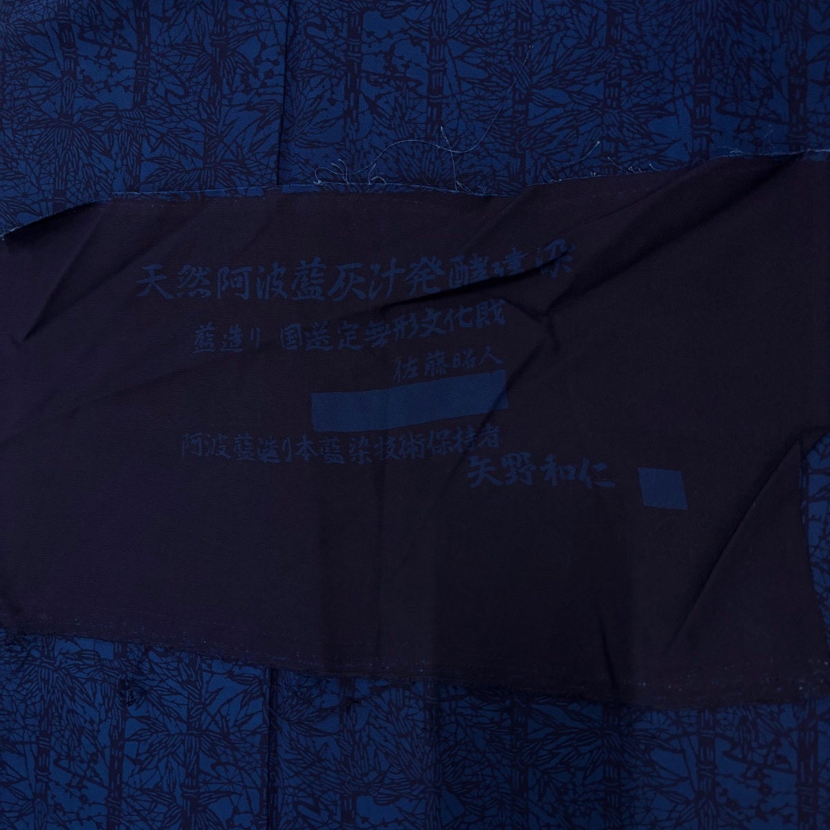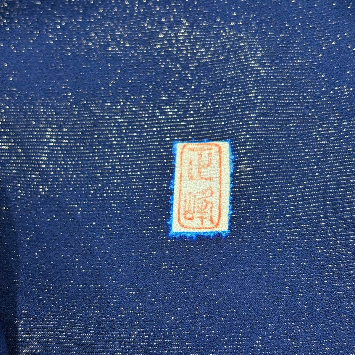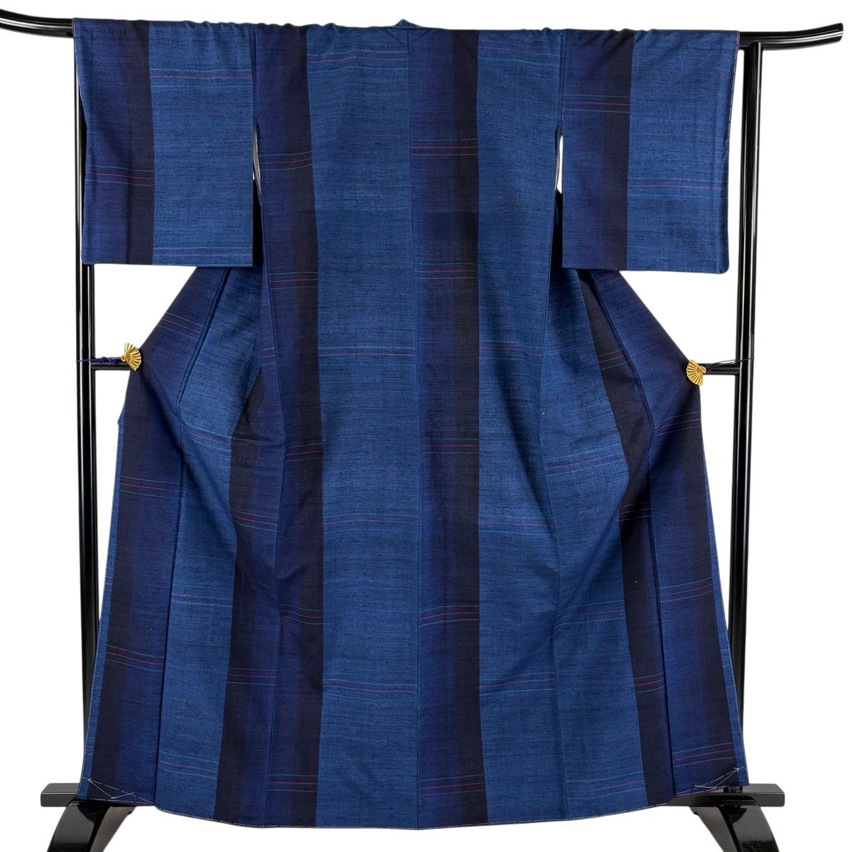 紬 身丈163cm 裄丈64.5cm M 袷 置賜紬 証紙あり 縦縞 幾何学模様 紺色 正絹 逸品