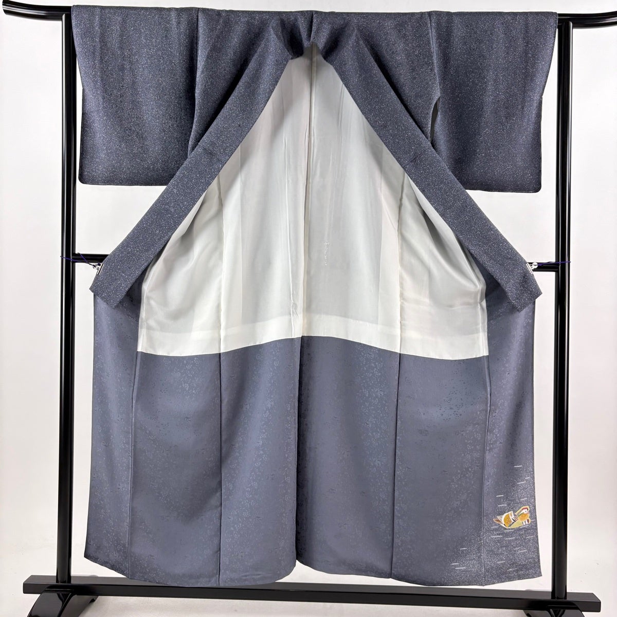 【美品】 付下げ 身丈159.5cm 裄丈63cm S 袷 お召地 小花 雪輪 ぼかし 墨色 正絹 逸品