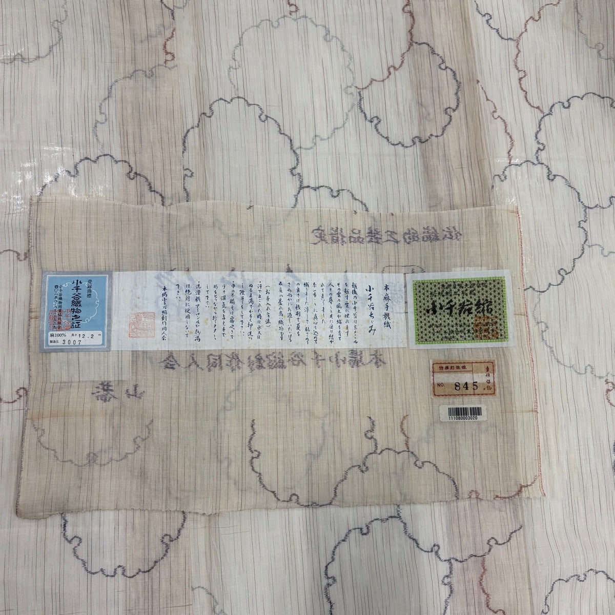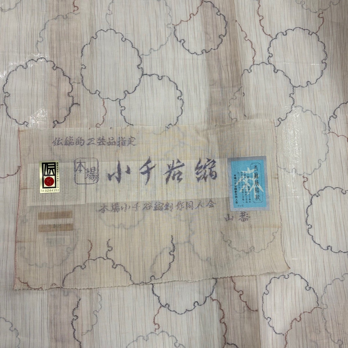 【美品】 紬 身丈152cm 裄丈62cm S 薄物 小千谷縮 証紙あり 雪輪 ベージュ 麻 逸品