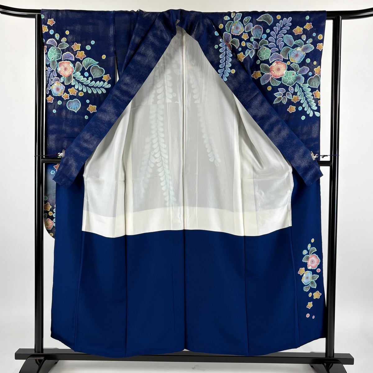 振袖 身丈153cm 裄丈66cm M 袷 草花 流水 青紫 正絹 逸品