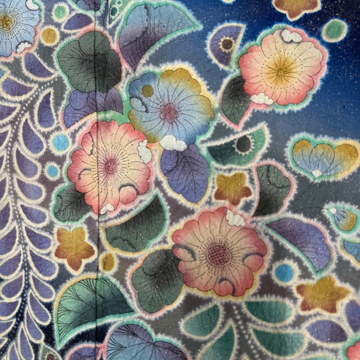 【美品】浴衣 身丈158cm 裄丈64cm M 絞り浴衣 浴衣セット 草花 濃紺 綿 名品