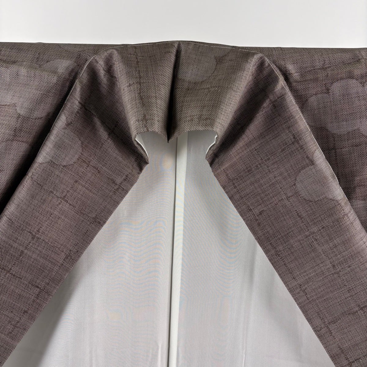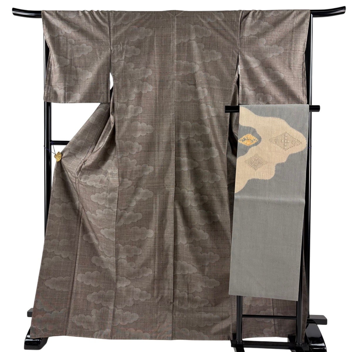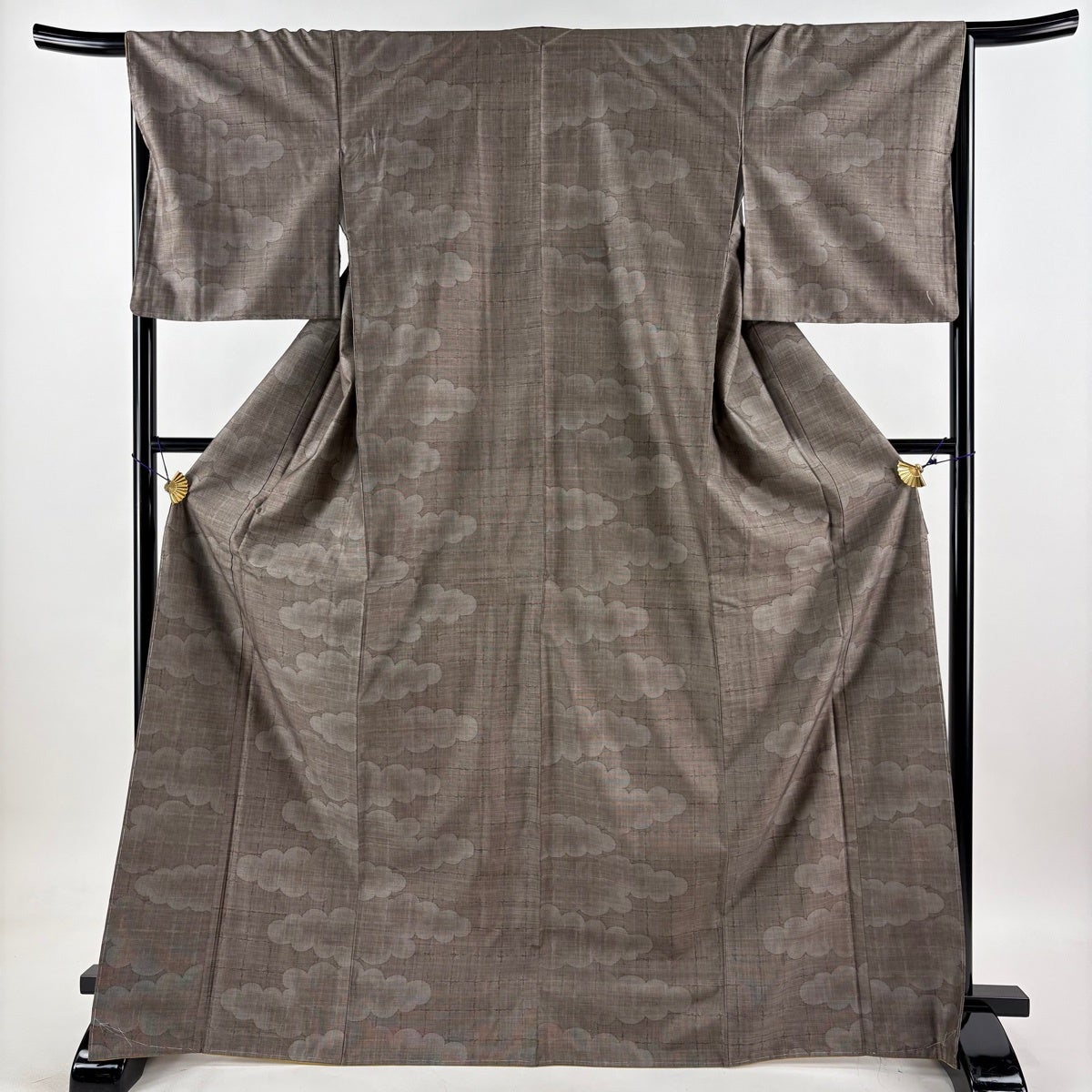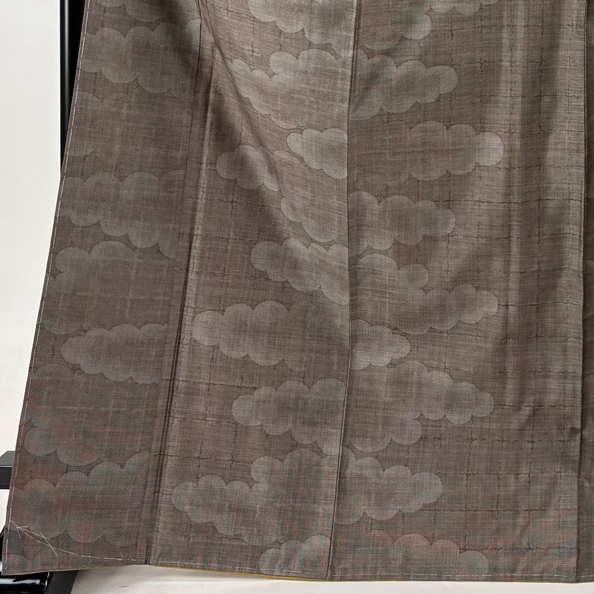 【美品】 お召 身丈164.5cm 裄丈67cm M 袷 麻の葉 焦茶色 正絹 逸品