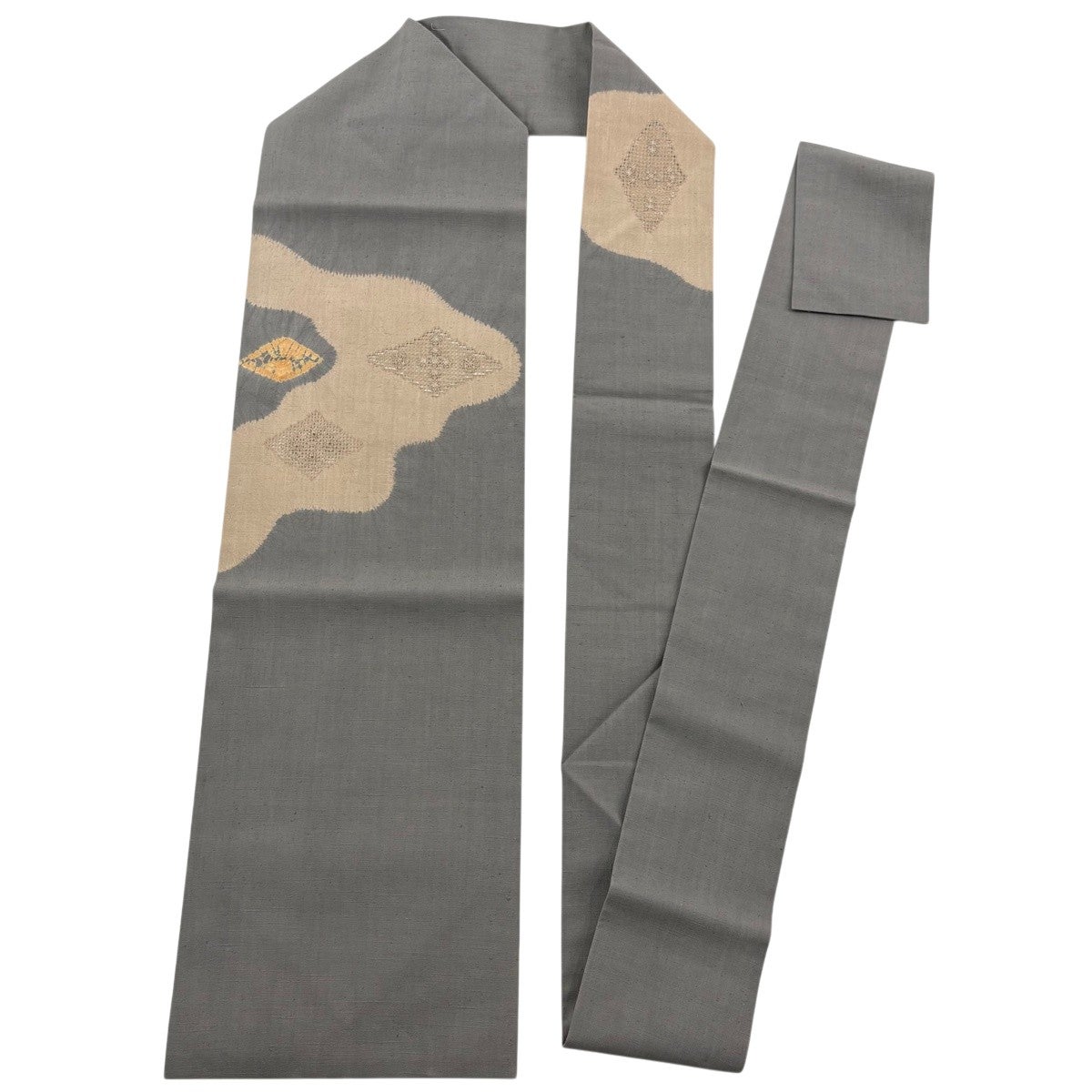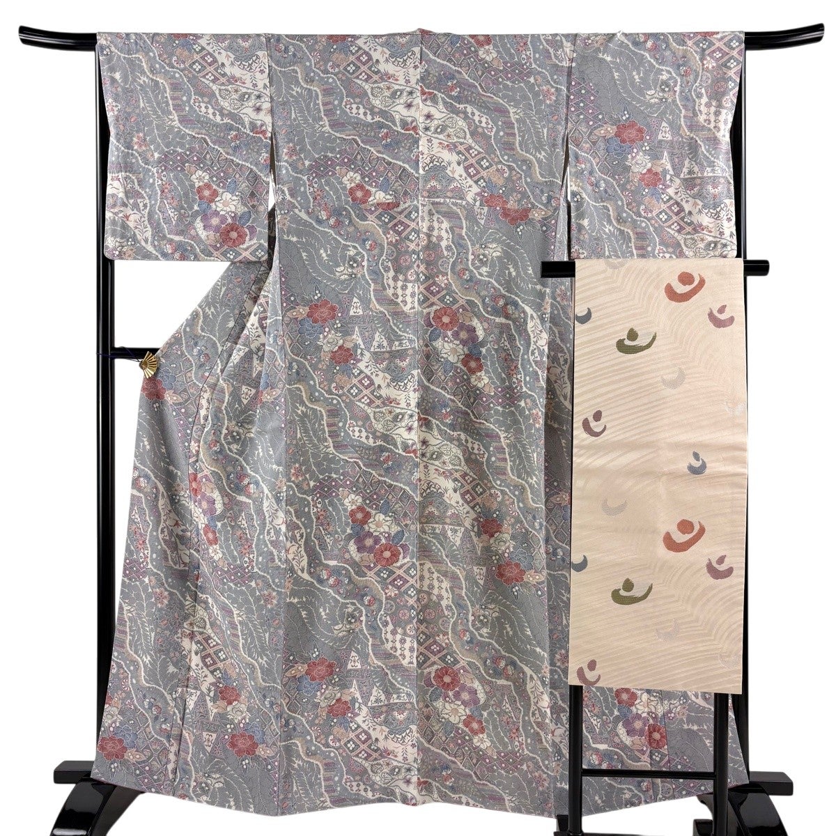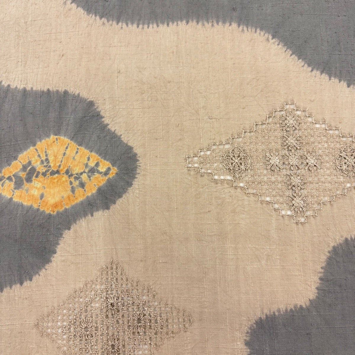【美品】 男着物 身丈141.5cm 裄丈66cm M 絞り浴衣 幾何学 灰色 綿 名品