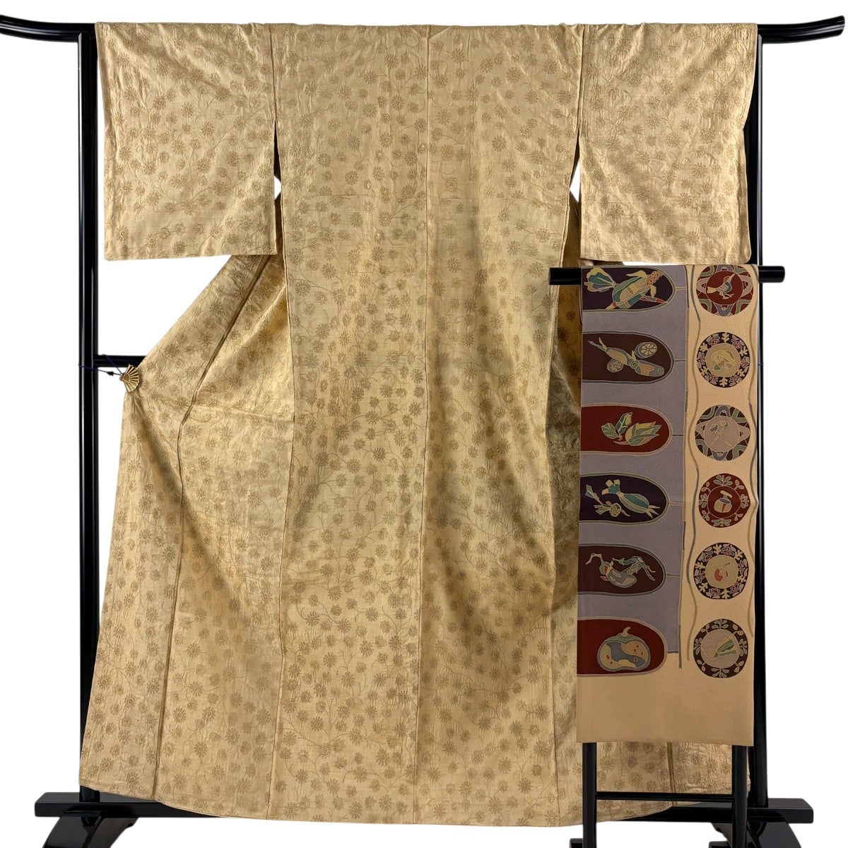 【美品】 袋帯 逸品 秋草 金糸 クリーム お太鼓柄 正絹