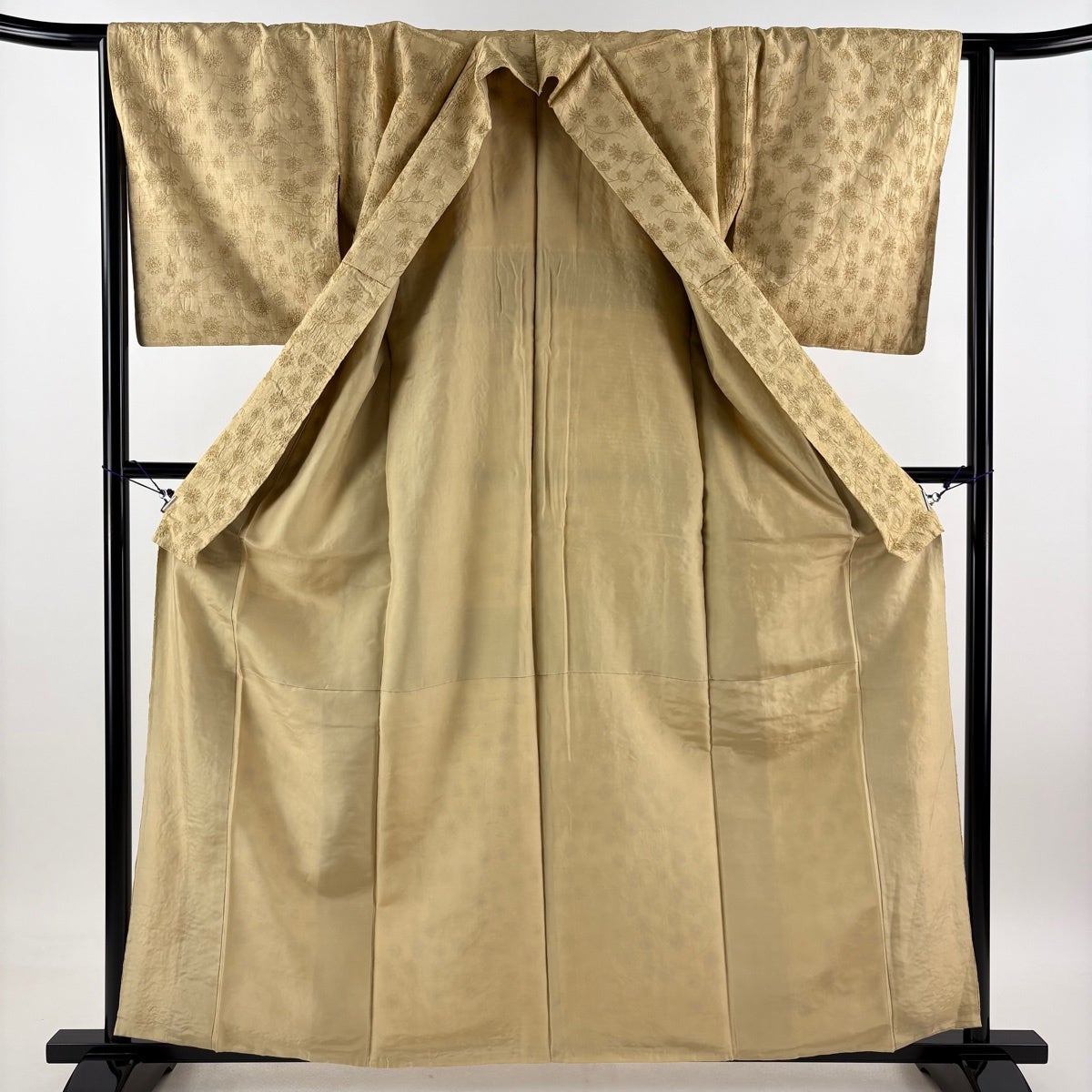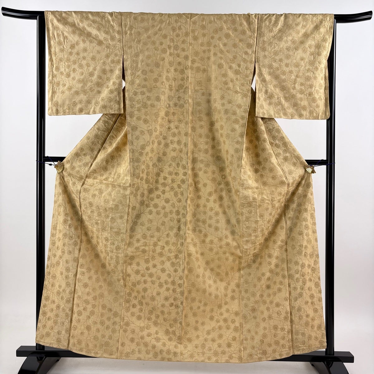 訪問着 身丈158cm 裄丈65cm M 袷 松井青々 落款あり 枝梅 菊 金彩 薄オレンジ 正絹 逸品 一つ紋