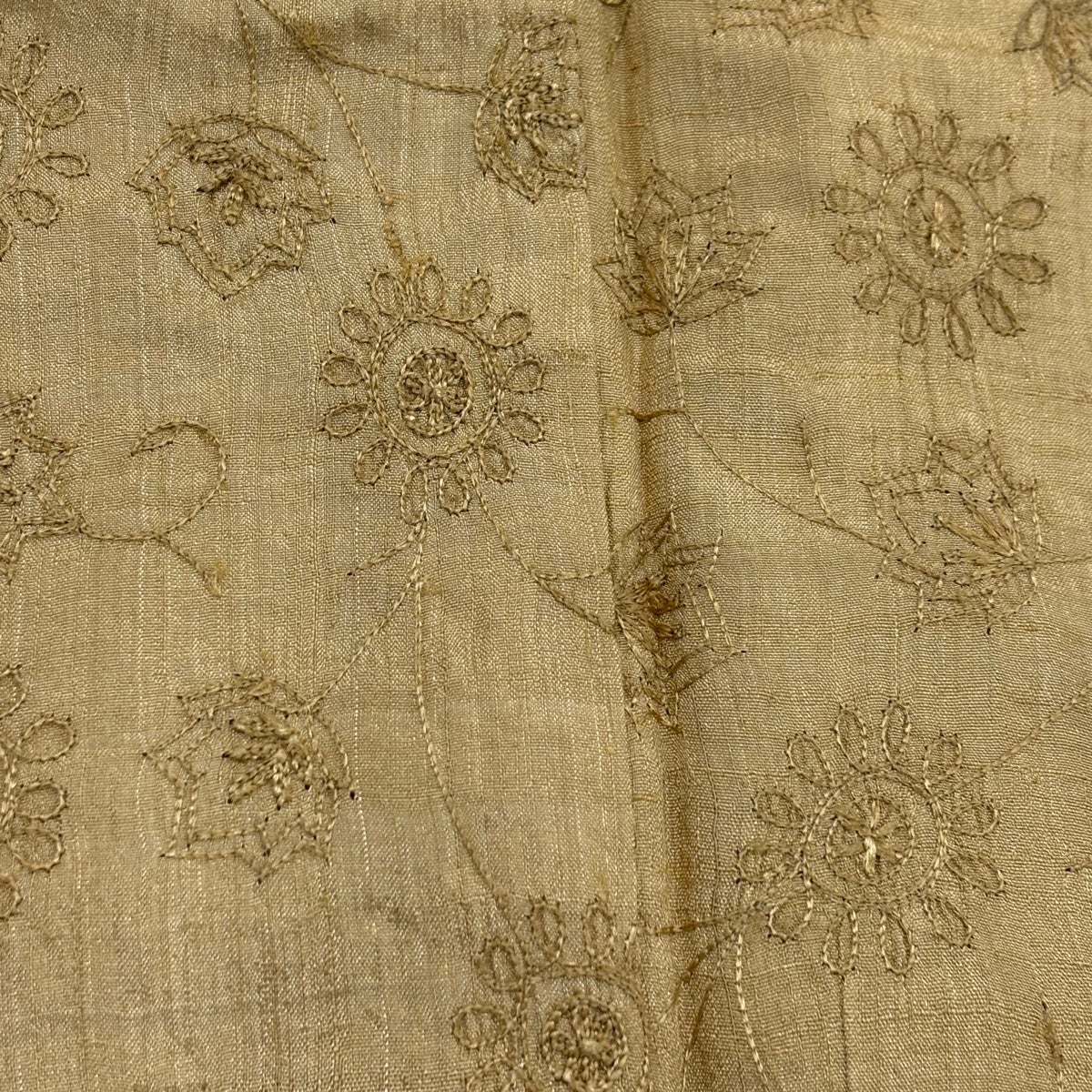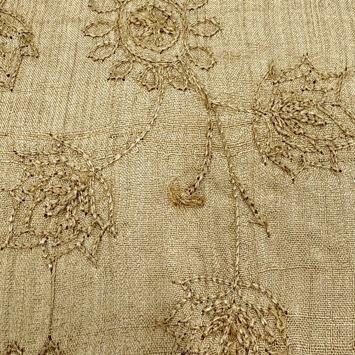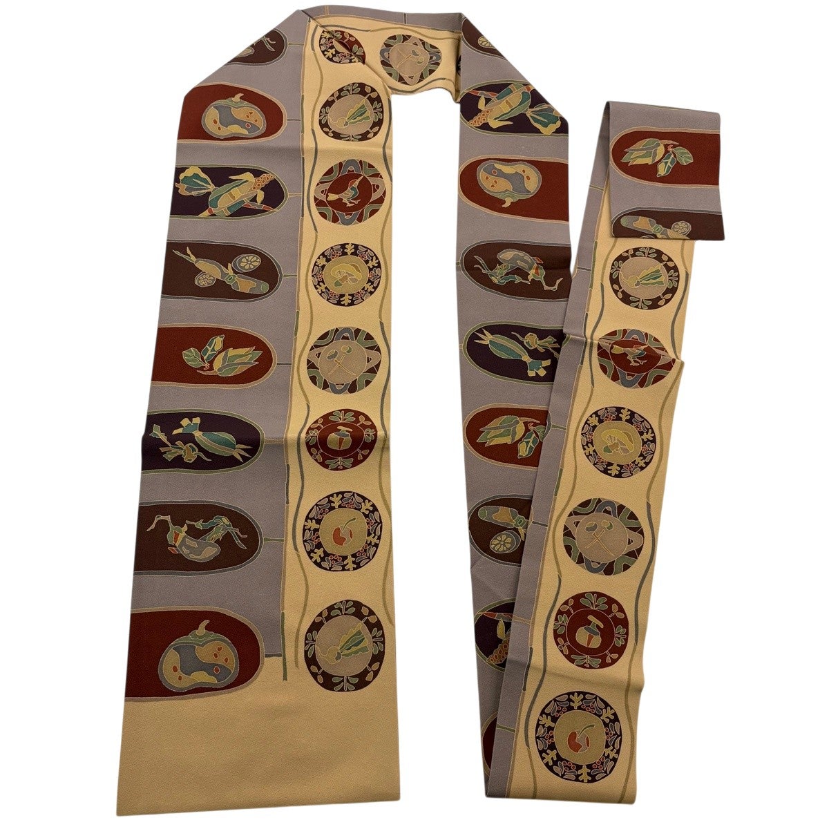 袋帯 逸品 草花 雲文 金糸 薄茶色 お太鼓柄 正絹